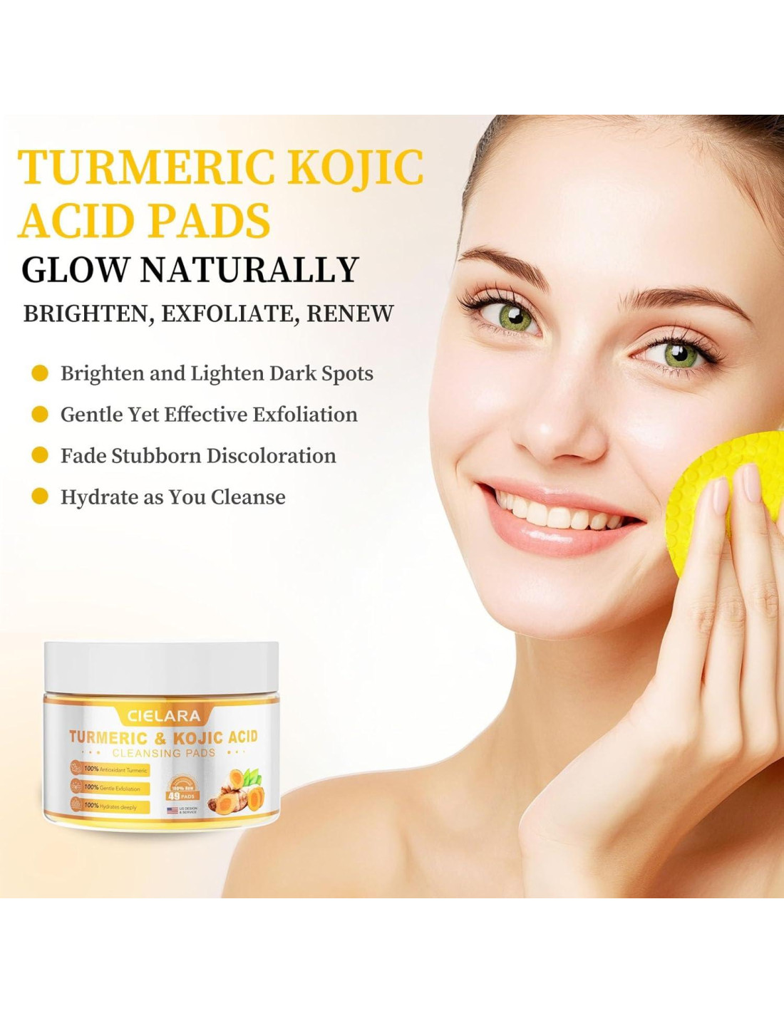 Pads de Limpieza de Ácido Kojico y Cúrcuma para la Cara Manchas Oscuras Todos los Tipos de Piel, Rondas de Algodón Exfoliantes para Hombres y Mujeres, 33 Contenido