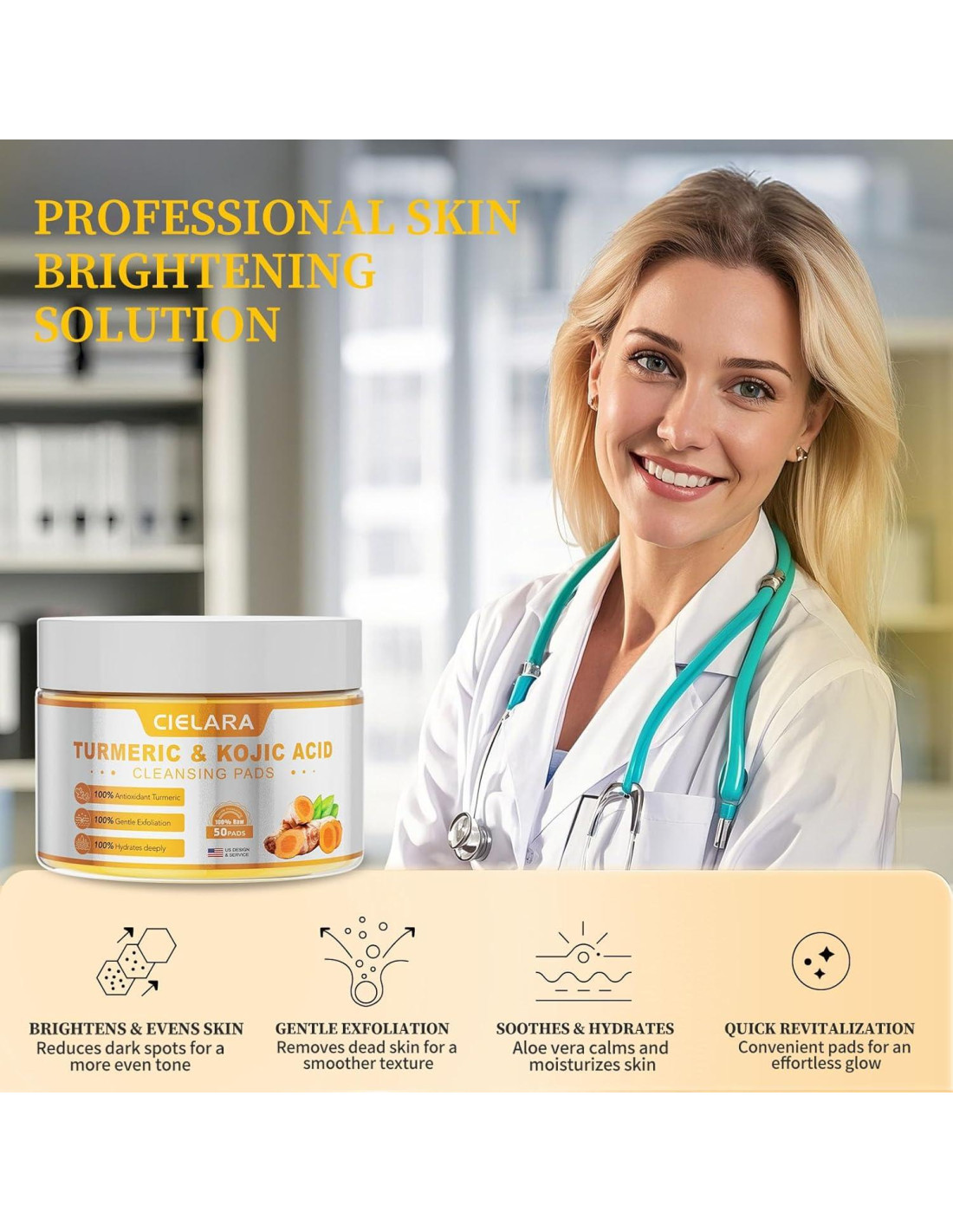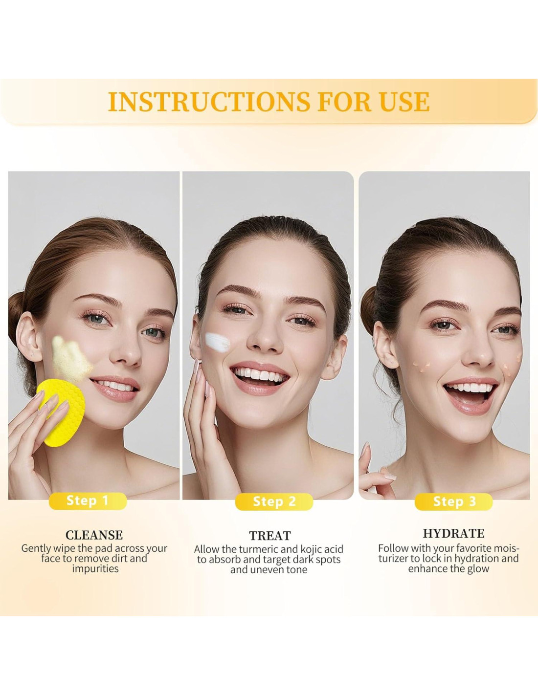 - Ilumina y Refresca la Piel Opaca: Infundidos con cúrcuma, ácido kojico y extracto de limón, estos pads de limpieza exfolian y aclaran suavemente la piel para reducir la apariencia de manchas oscuras, dejando tu cutis más brillante y con un tono más uniforme.