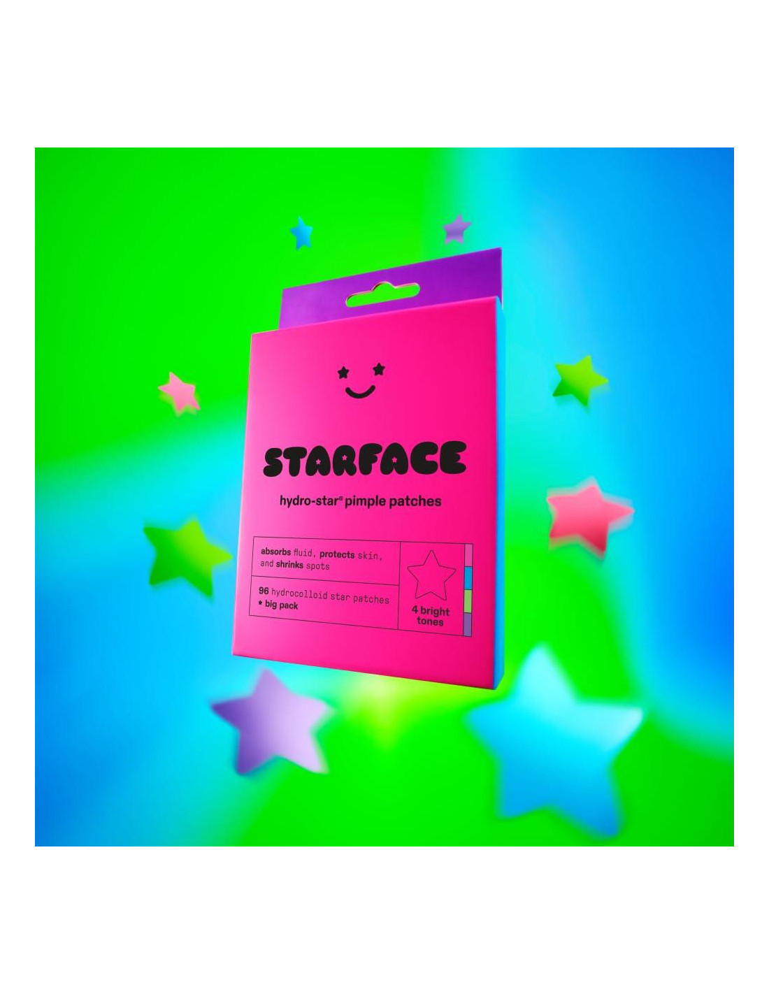 - PAQUETE STARFACE: Mantén la piel linda y feliz con tres favoritos de Starface: parches para espinillas Hydro-Star 100% hidrocoloides en amarillo clásico, negro y un paquete múltiple colorido.