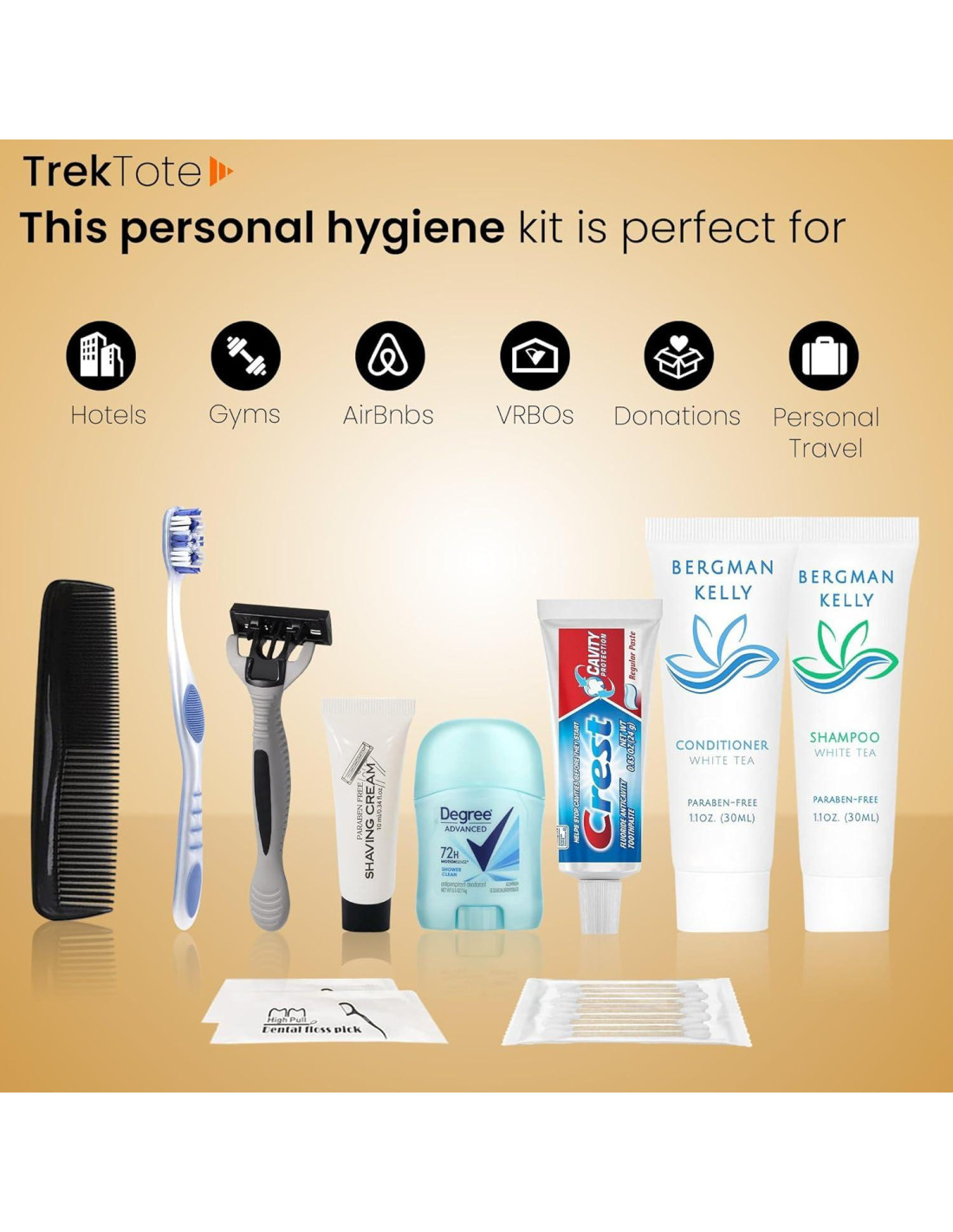 - Artículos de Aseo de Alta Calidad en Cada Kit: Cada kit de aseo incluye una selección de productos premium, como champú, acondicionador, gel de ducha y más, asegurando que sus destinatarios reciban lo mejor.