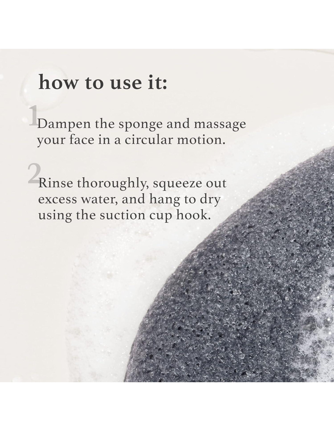 - CÓMO APLICAR: Usa la esponja facial exfoliante de carbón Konjac día y noche, con o sin limpiador. Para usar, primero humedece la esponja de carbón Konjac. Da un apretón a la esponja para liberar el exceso de agua. Si agregas limpiador, agrégalo directamente a la esponja húmeda. Luego, masajea tu cara en un movimiento circular. Enjuaga bien, exprime el exceso de agua y cuélgala para secar usando el gancho de ventosa. Reemplaza tu esponja Konjac después de 12 meses.