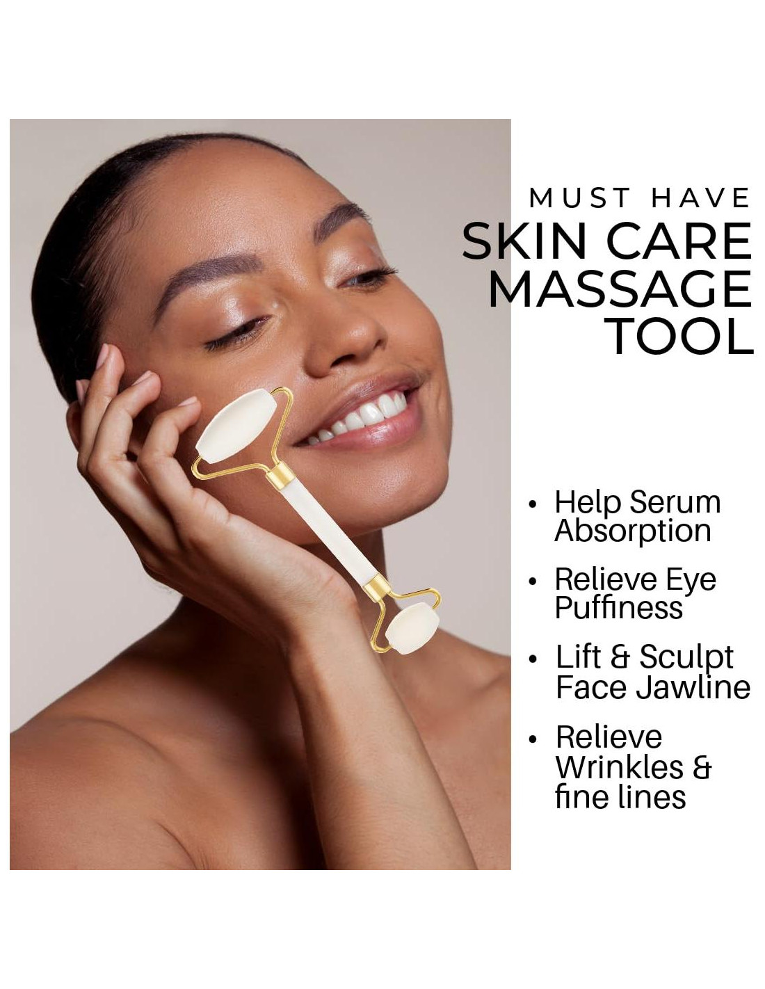 - [PIEL JOVEN] Usa la herramienta de rodillo de jade blanco para estimular la circulación sanguínea, regeneración celular, liberar exceso de líquido y toxinas