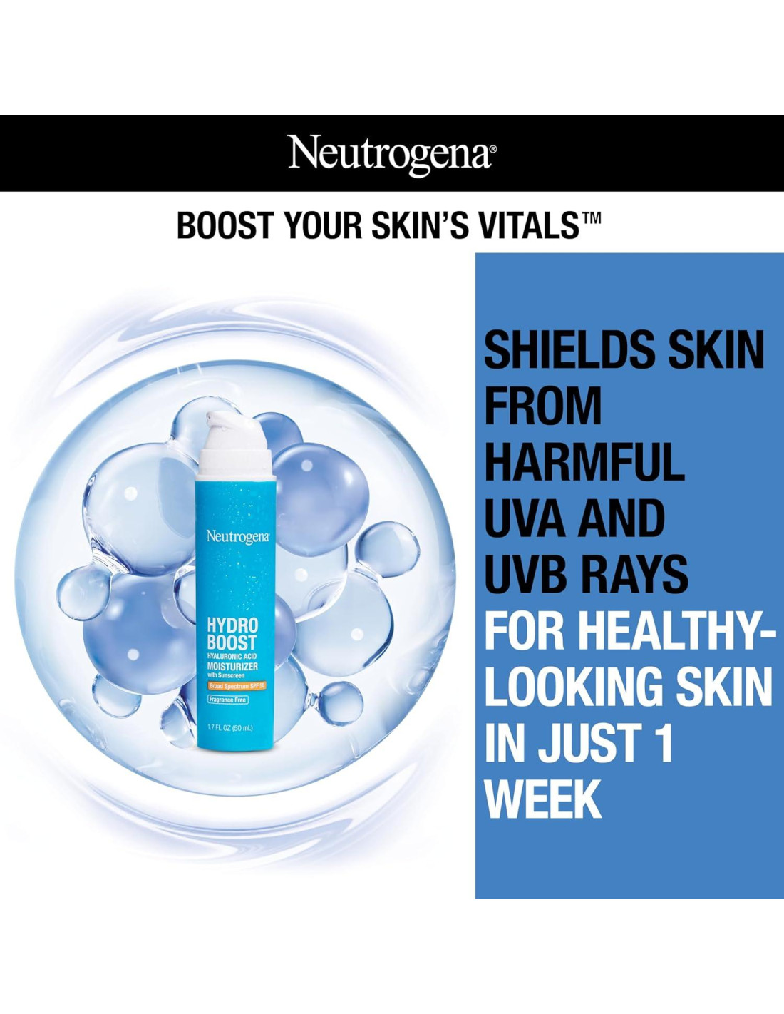 - Hidratante sin peso con protector solar de amplio espectro SPF 50 proporciona hidratación durante todo el día para una piel suave y flexible. El hidratante con ácido hialurónico hidrata instantáneamente para una piel más suave y proporciona una piel radiante y de aspecto saludable en una semana