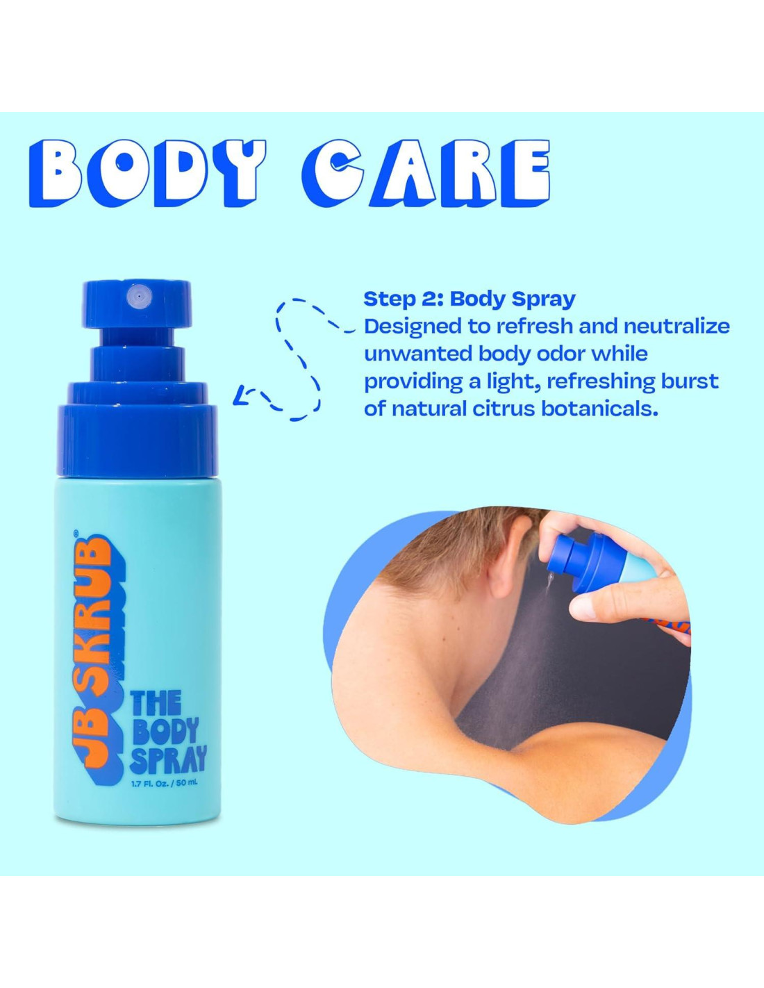 Somos el transporte, cocineros, cajeros automáticos - somos mamás de chicos. Amamos a nuestros chicos, pero apestan. Es algo que ha estado sin abordar durante mucho tiempo (aunque no sin notarse). La lucha - y el olor - es real. Para chicos que definitivamente no son pequeños, pero tampoco son hombres. Lo que necesitan son productos seguros, suaves y fáciles de usar que están diseñados para ellos por ellos. Nos asociamos con formuladores expertos para crear una línea con ingredientes limpios y de origen sostenible. ¡Sí! Todos los productos de JB SKRUB son veganos y libres de crueldad. Nunca probamos en animales y aseguramos que todos nuestros socios también sean libres de crueldad. El Limpiador Facial JB SKRUB, la Loción Facial y los Discos Faciales no tienen fragancia añadida. El Gel de Ducha JB SKRUB y el Spray Corporal contienen aceites botánicos derivados de frutas que contribuyen al aroma. Sin fragancia sintética. JB Skrub formula según los estándares de la UE y no utiliza químicos potencialmente dañinos para la salud o el medio ambiente. JB SKRUB El Gel de Ducha JB SKRUB El Champú JB SKRUB El Spray Corporal JB SKRUB La Loción Facial JB SKRUB El Limpiador Facial