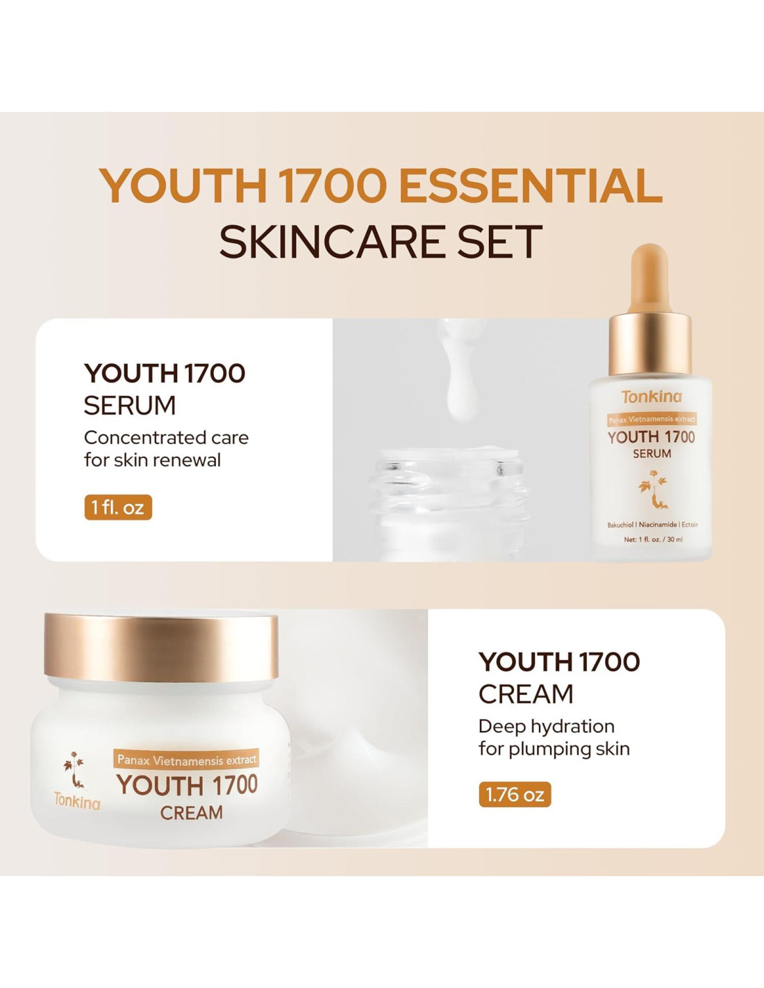 - Trío Completo de Cuidado de la Piel Antienvejecimiento - Esta rutina de 3 pasos incluye el Suero, Crema y Crema para los Ojos Youth 1700 de Tonkina, trabajando en sinergia para reducir las líneas finas, suavizar las arrugas y reafirmar visiblemente la piel. Es todo lo que necesitas para restaurar la radiancia juvenil y mantener un cutis saludable y radiante.