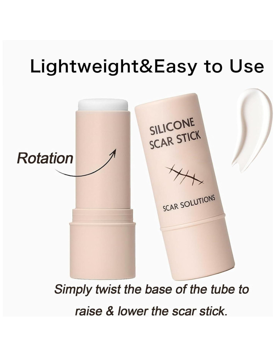 - [HUMEDAD QUE APOYA LAS CICATRICES]: Al igual que las hojas, geles y cintas de silicona para cicatrices, esta conveniente crema en barra de 60% silicona forma una barrera oclusiva a prueba de agua, reteniendo la humedad y apoyando la piel mientras se recupera naturalmente de las cicatrices. Proporciona beneficios visuales de suavizado para las estrías y marcas post-imperfecciones