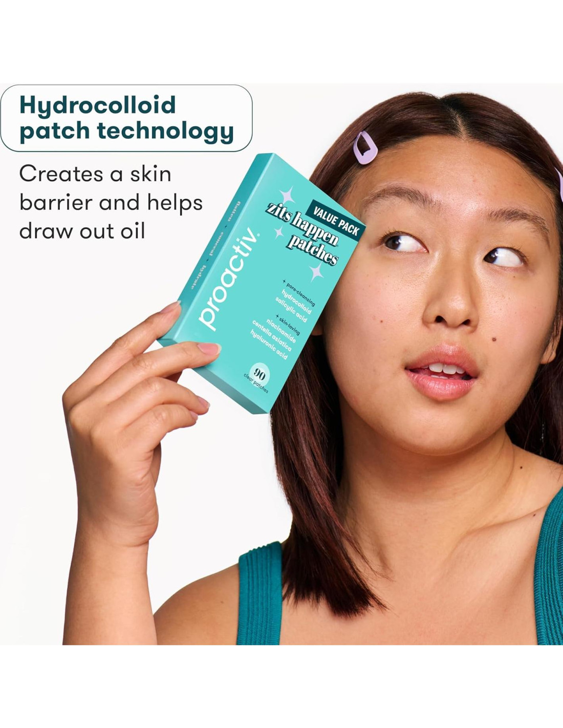 - Desarrollado y probado por dermatólogos: los Parches Zits Happen de Proactiv crean una barrera en la piel para ayudar a mantener la piel protegida durante los brotes, mientras que la tecnología de parches de hidrocoloide ayuda a extraer el aceite y absorber impurezas