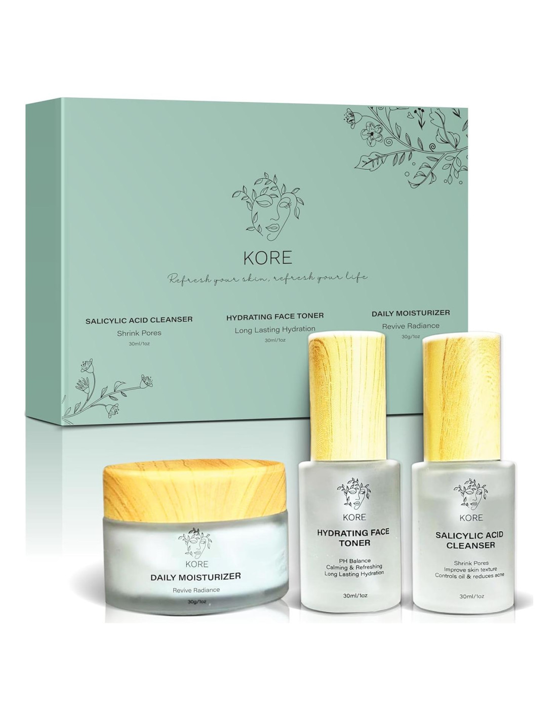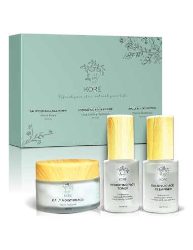 - SET DE CUIDADO DE LA PIEL COREANO PARA UN BRILLO DE PIEL DE CRISTAL - Logra la piel de cristal coreana definitiva con este set de cuidado de la piel de 3 piezas, que incluye un Limpiador de Ácido Salicílico, un Tónico Facial Hidratante y un Hidratante Diario. Este kit de cuidado de la piel vegano y equilibrante de PH está diseñado para una limpieza profunda, hidratación y reparación de la barrera cutánea, convirtiéndolo en un imprescindible para tu rutina diaria de cuidado de la piel.