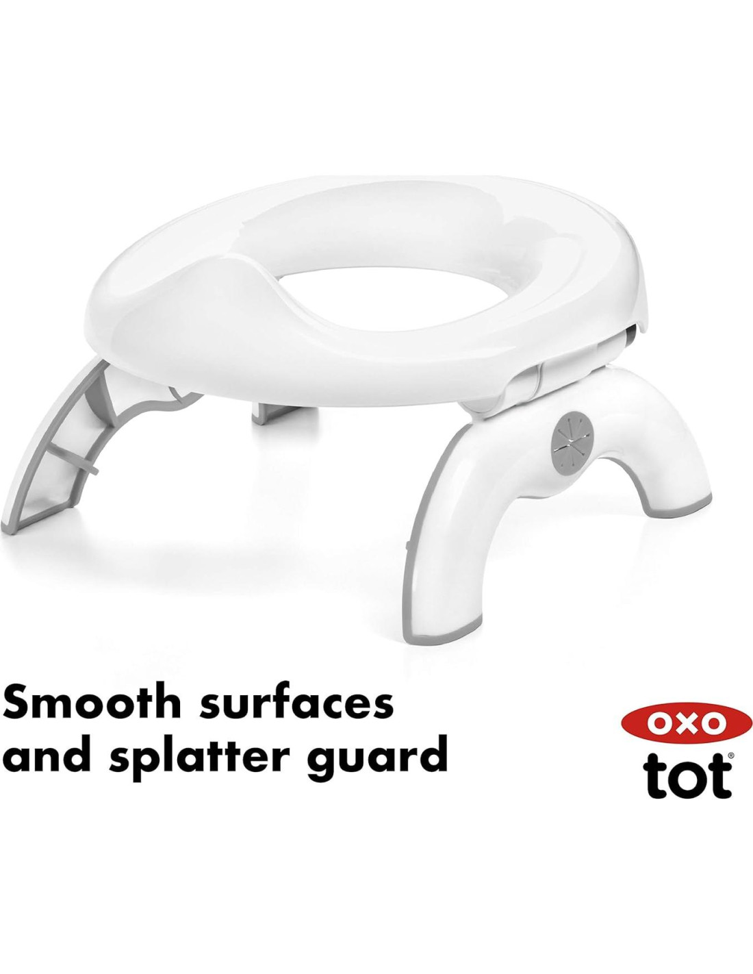 Prepárate para emergencias de orinal sobre la marcha con el OXO Tot 2-en-1 Orinal de Viaje. El orinal se abre rápida y fácilmente y funciona solo (con bolsas desechables), o como un asiento que se coloca sobre inodoros. Las patas se bloquean a la altura ideal para los pequeños en crecimiento, y las solapas suaves y flexibles mantienen las bolsas desechables en su lugar de manera segura. Se incluyen tres bolsas desechables con almohadillas absorbentes, y hay recargas disponibles, además el orinal puede acomodar bolsas de plástico estándar en un apuro. Las patas se pliegan completamente y los agarres antideslizantes mantienen el orinal estable en inodoros públicos redondos o alargados. El pequeño asiento está diseñado para pequeños traseros y el generoso escudo previene salpicaduras. Las superficies lisas son fáciles de limpiar y las patas se pliegan, permitiendo que el orinal quepa en la bolsa de viaje incluida para su almacenamiento en coches, cochecitos o bolsas de pañales.