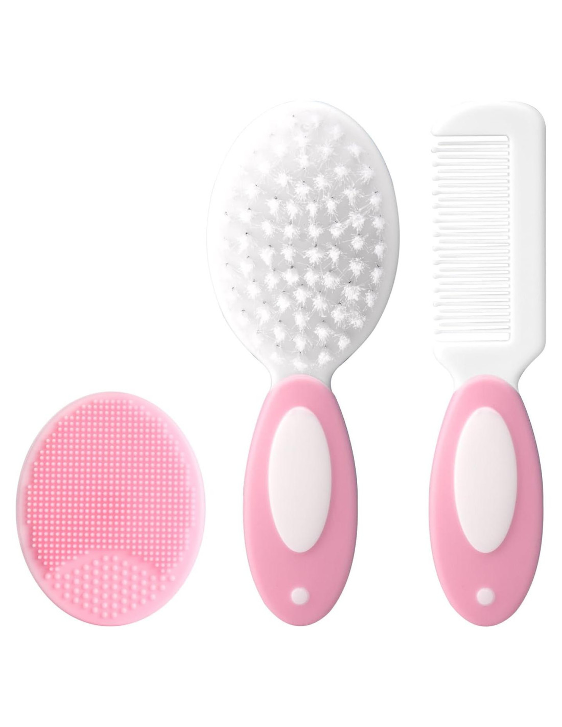- CEPILLO PARA BEBÉ - Hecho de cerdas suaves de PP, libre de BPA, que es tanto suave como efectivo para limpiar el cuero cabelludo del bebé. También calma a tu bebé durante su uso. La parte del mango rosa proporciona un agarre cómodo y un aspecto lindo.
