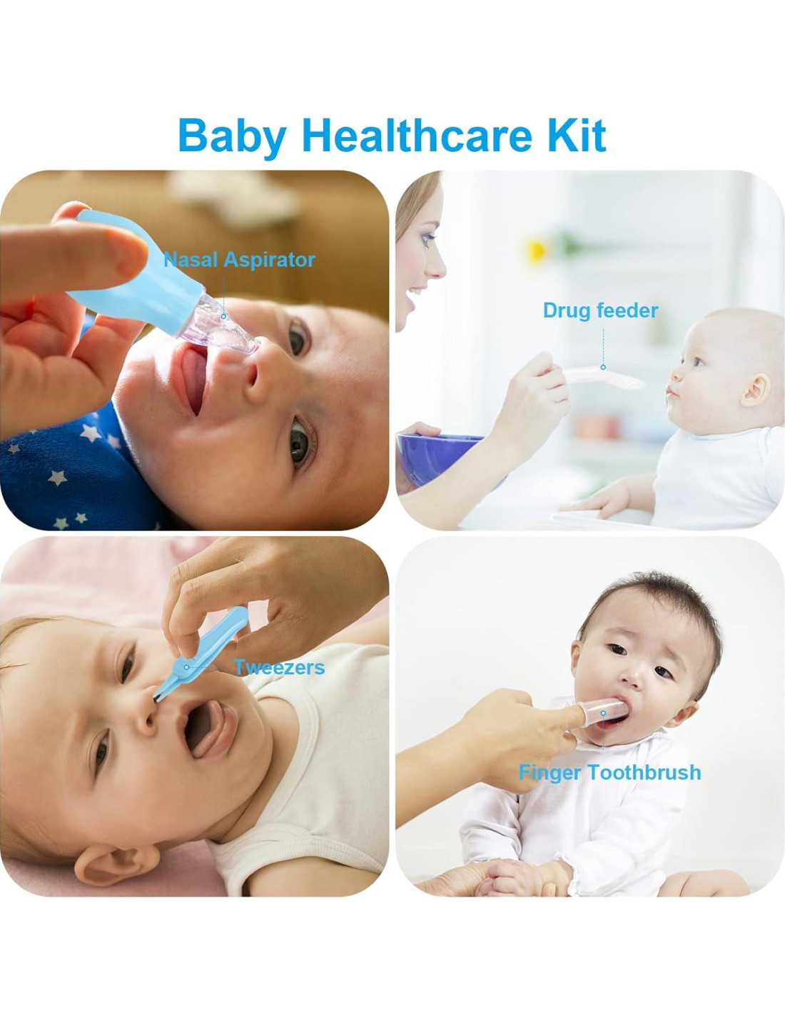 - Diseño íntimo: un suave cepillo de dientes de silicona para limpiar los dientes y la lengua de su bebé; la punta pequeña y flexible del aspirador nasal es más adecuada para la nariz del bebé; el diseño del cortauñas curvado hace que la manicura sea más segura y rápida; el gotero succiona más medicina de manera precisa; los cepillos de enfermería suaves y los peines para bebés pueden brindar comodidad a los bebés; las tijeras de diseño de cabeza redonda son más seguras y confiables. Proporcione a su bebé el mejor cuidado diario en todos los aspectos.