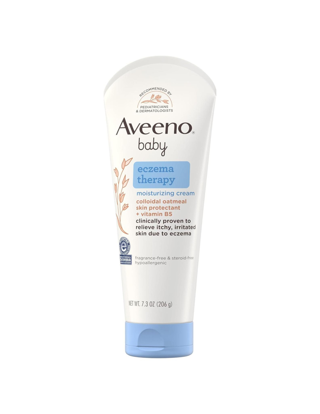 La Crema Hidratante para el Cuerpo Aveeno Baby Eczema Therapy ayuda a aliviar la piel seca, con picazón e irritada debido al eczema. Desarrollada con dermatólogos líderes, esta crema para eczema de bebé hipoalergénica utiliza el poder calmante de la avena coloidal natural para ayudar a fortalecer la barrera de humedad de la piel para la prevención y protección contra la sequedad. Formulada especialmente para bebés, esta crema para bebé no grasa está clínicamente probada para aliviar la piel con picazón e irritada debido al eczema y humecta intensamente la piel para prevenir la recurrencia de la piel extra seca por eczema. La fórmula única, hecha con avena coloidal natural como protector de la piel y vitamina B5, está equilibrada en pH y libre de esteroides, fragancias, parabenos, ftalatos y fenoxietanol. Aveeno es recomendado por pediatras y dermatólogos y esta crema para eczema de bebé es aceptada por la Asociación Nacional de Eczema.