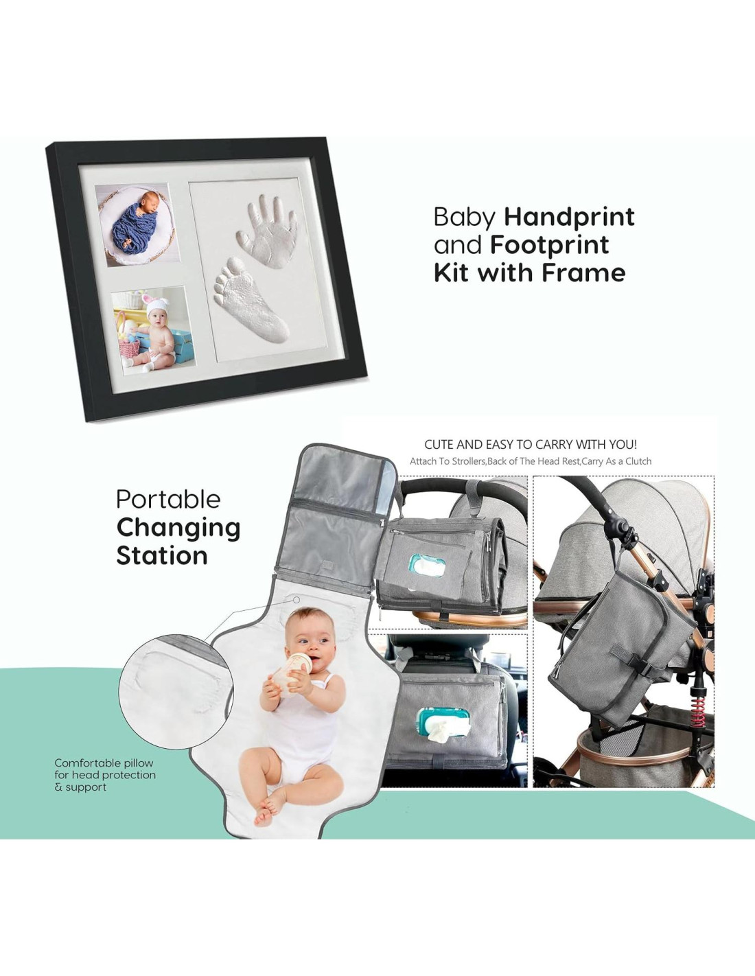- El Kit Contiene - monitor de bebé y cámara, almohadilla de carga portátil para bebé, termómetro digital para bebé, cortador de uñas eléctrico para bebé, bolsa para pañales, espejo para auto, set de alimentación de silicona para bebé, chupete, clip de cadena para chupete y kit de huellas de mano y pie para bebé con marco