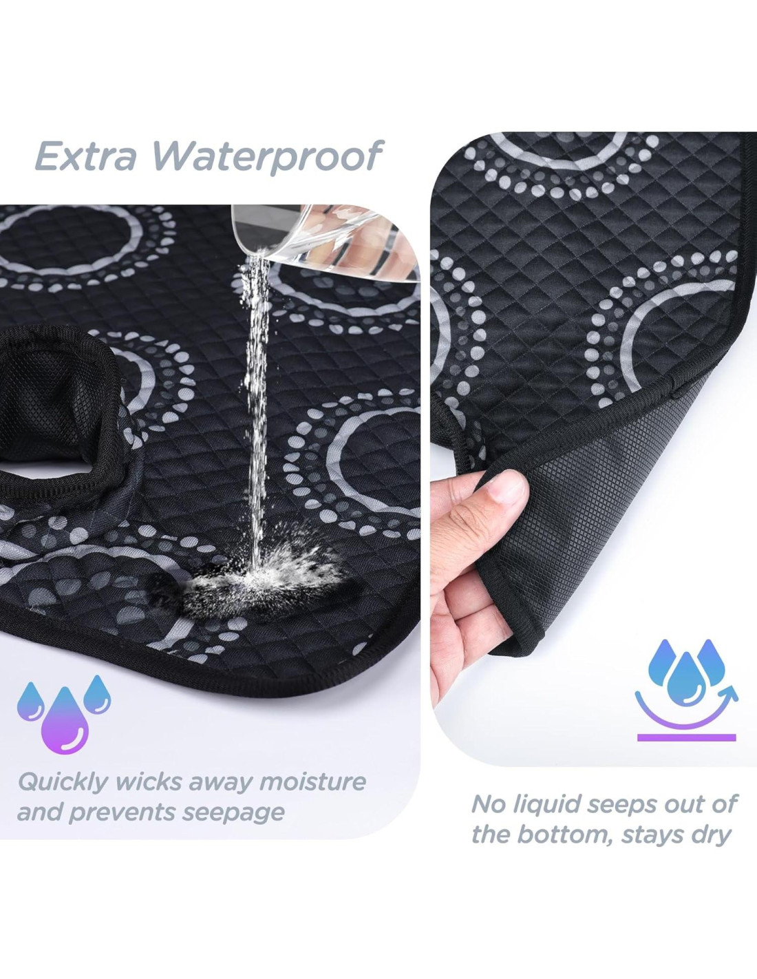 - Características a Prueba de Fugas de 360: La funda de asiento de coche impermeable adicional proporciona protección de 360 grados alrededor de la hebilla central. La capa inferior está hecha de tela antideslizante texturizada, que mantiene la almohadilla en su lugar de manera segura. Previene eficazmente las fugas de pañales y los accidentes de entrenamiento de baño de manchar los asientos.