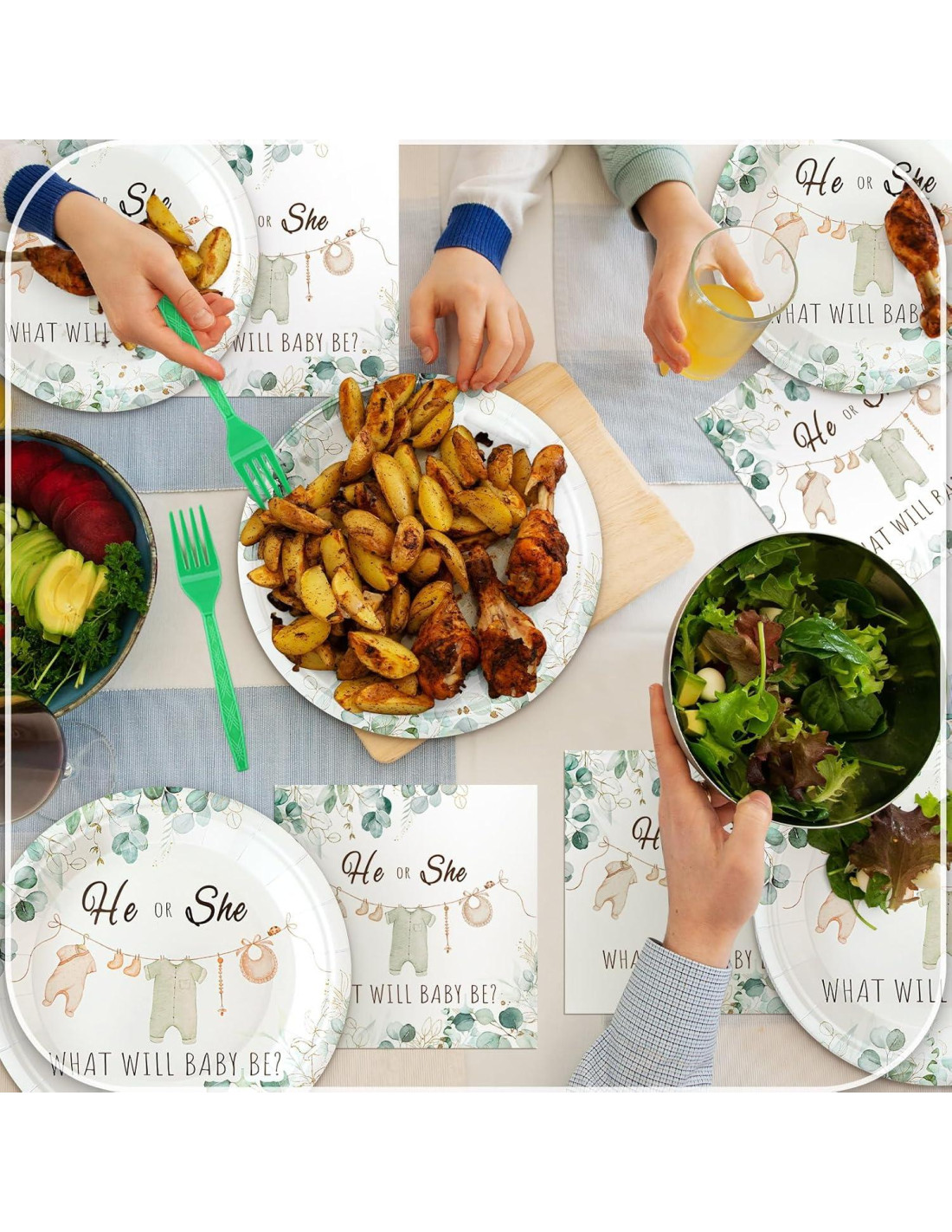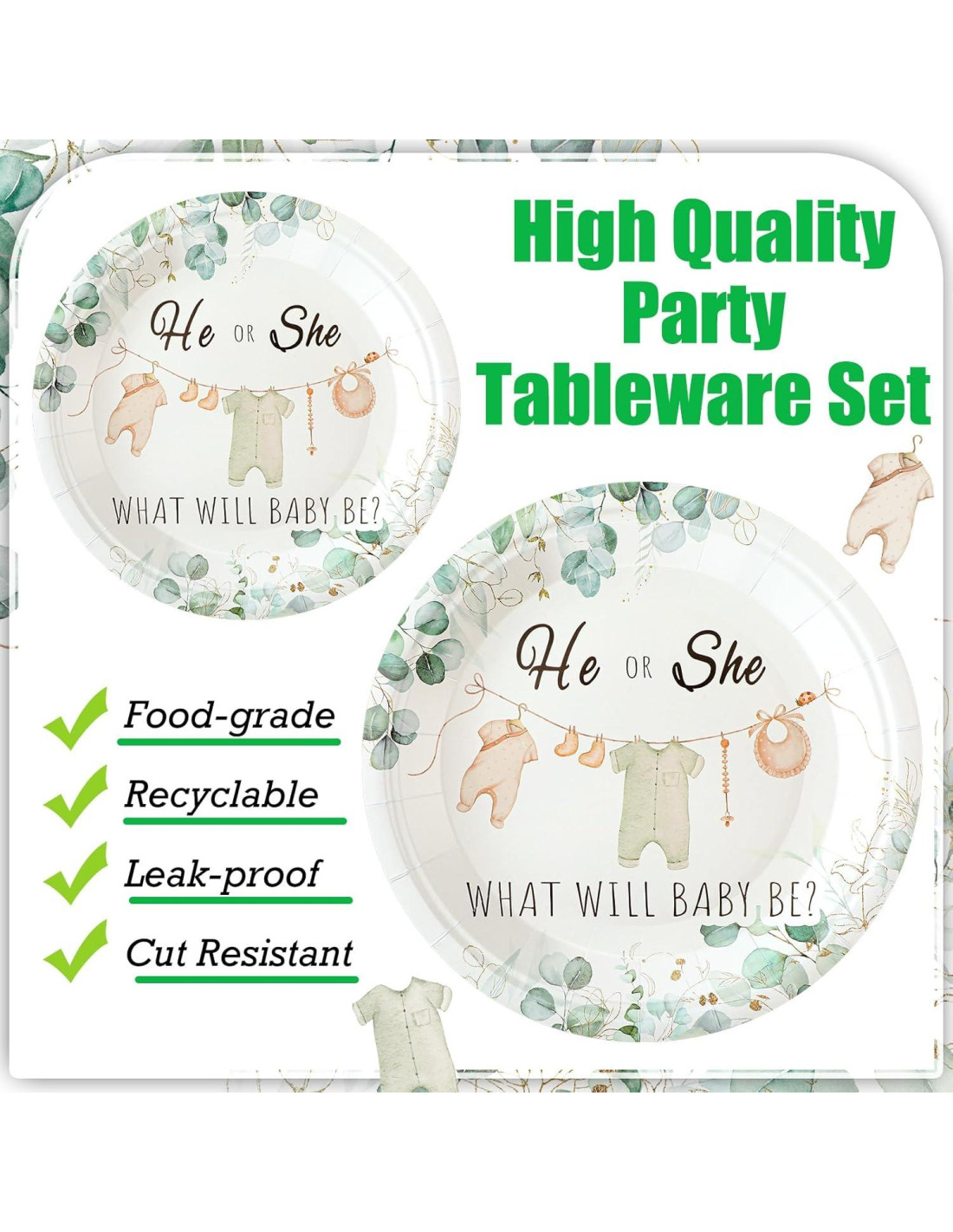 - Amplia Aplicación: estas decoraciones de fiesta de revelación de género verde son adecuadas para muchas ocasiones; Esta vajilla de baby shower es adecuada para fiestas de revelación de género, baby showers, anuncios de embarazo, fiestas temáticas de bodas, cumpleaños, bautizos