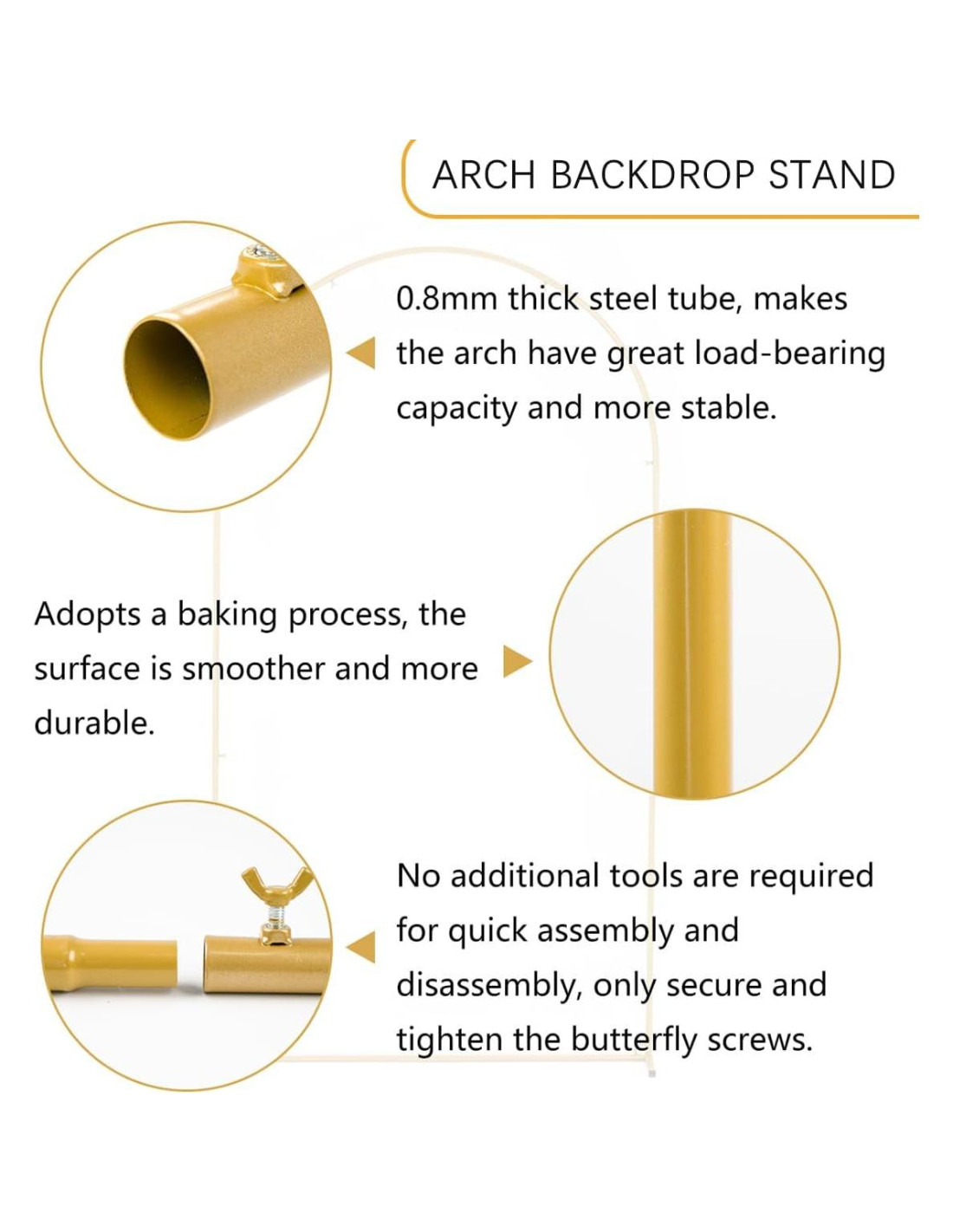 - Característica especial: Soporte de arco de metal duradero y estable con acabado dorado lujoso, cubierta de arco de alta calidad hecha de material de spandex elástico