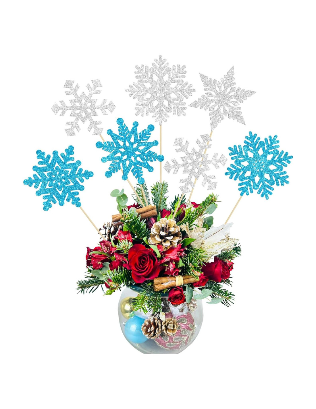 - -Estos Palos de Centro de Copo de Nieve Congelado son tan lindos y buenos para decoraciones de fiesta de tema de Copo de Nieve Congelado, toppers de mesa de cumpleaños de Invierno Maravilloso, decoraciones florales de baby shower de tema de invierno. Pueden hacer que tu cupcake sea más atractivo y llevar la diversión a tu fiesta.