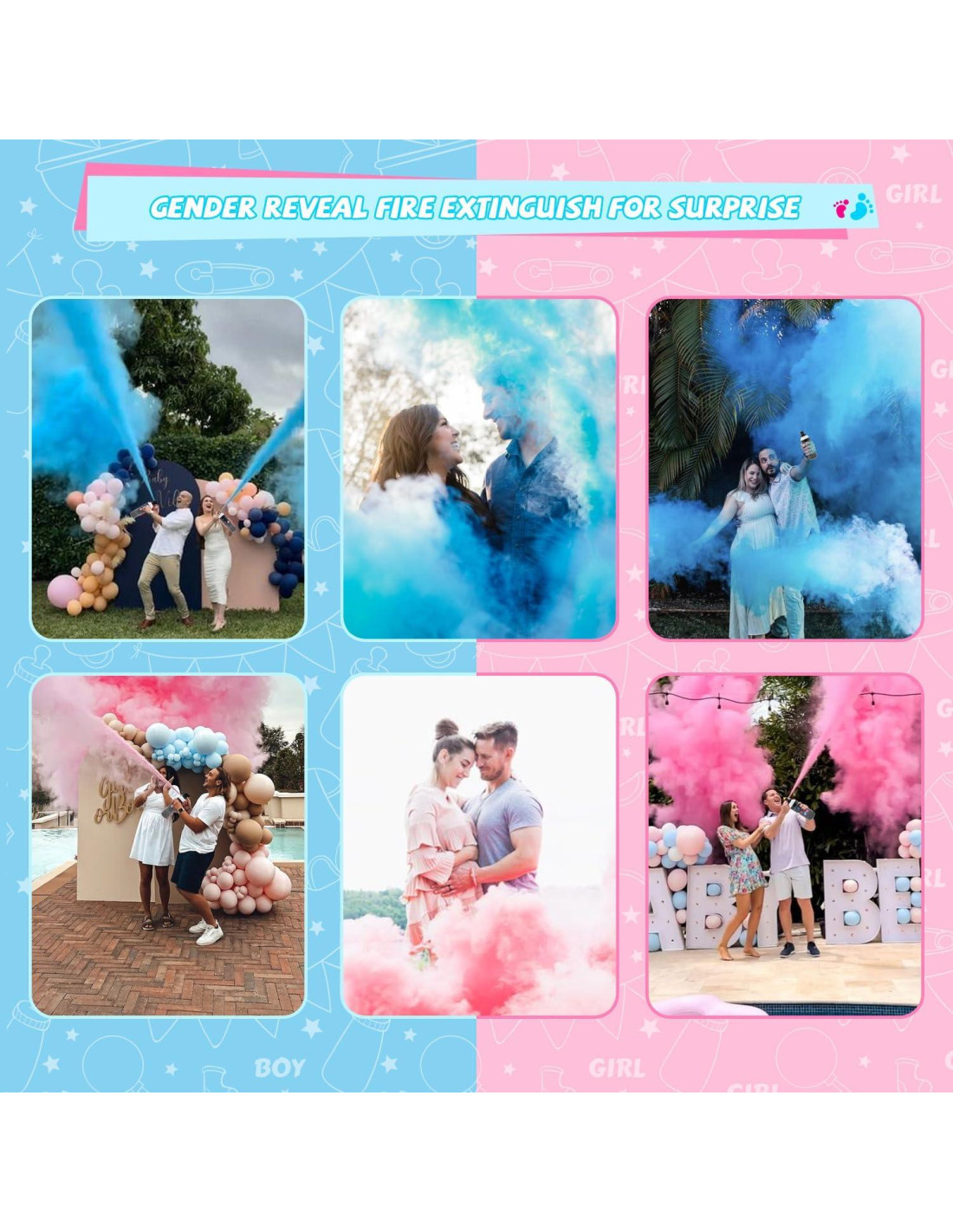 - Versátil y Seguro - Estas decoraciones de revelación de bebé extintores de fuego son perfectas para cualquier evento: úsalos en cumpleaños, baby showers, fiestas de despedida de soltera, carreras divertidas, guerras de colores, Acción de Gracias, Navidad o sesiones de fotos y videos. El kit de revelación de género es seguro para su uso tanto en interiores como en exteriores, ayudan a crear la atmósfera perfecta para tus momentos especiales.