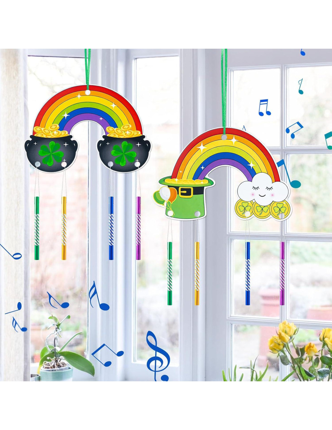 - Manualidades del Día de San Patricio: El kit de campanas de viento DIY para niños incluye decoración de arcoíris del Día de San Patricio en 2 estilos, 8 tubos de campana de viento en 4 colores, 2 alambres plateados de 1m, 2 cuerdas verdes de 50cm. gran conjunto para DIY y ayudarte a crear las decoraciones más distintivas