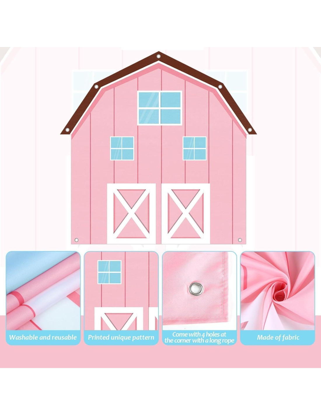 - Fácil de usar: Infla los globos rosa y blanco a varios tamaños y átalo de forma segura. Pasa el nudo de cada globo a través de la tira de globos. Varios tamaños se combinan para crear impresionantes arcos de guirnaldas de globos con tema de granja. Hay agujeros en la decoración de fondo de granja, y viene con una cuerda larga blanca, pasa la cuerda a través de los agujeros en el borde del fondo de granja para colgarlo directamente, ahorrando tiempo de decoración.