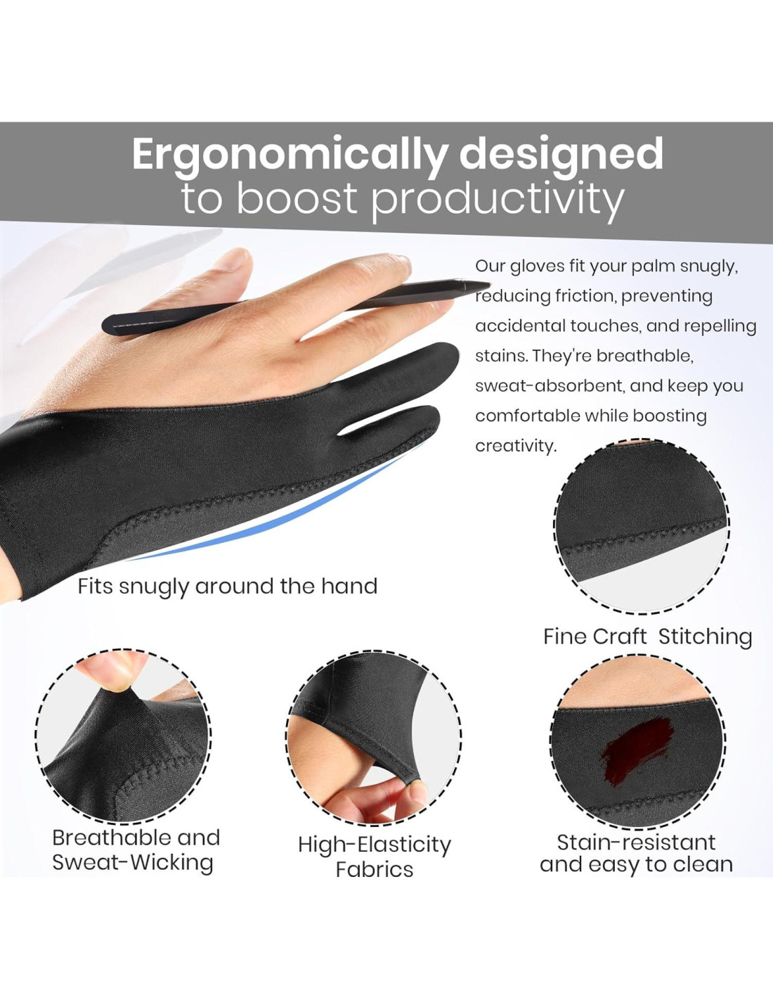 - Diseño de Dos Dedos que se Ajusta a Ambas Manos: No importa si eres zurdo o diestro, este guante de dibujo se ajusta cómodamente a cualquiera de las manos, adaptándose perfectamente a la forma de tu mano. El diseño ambidiestro asegura que puedas concentrarte en crear sin distracciones.