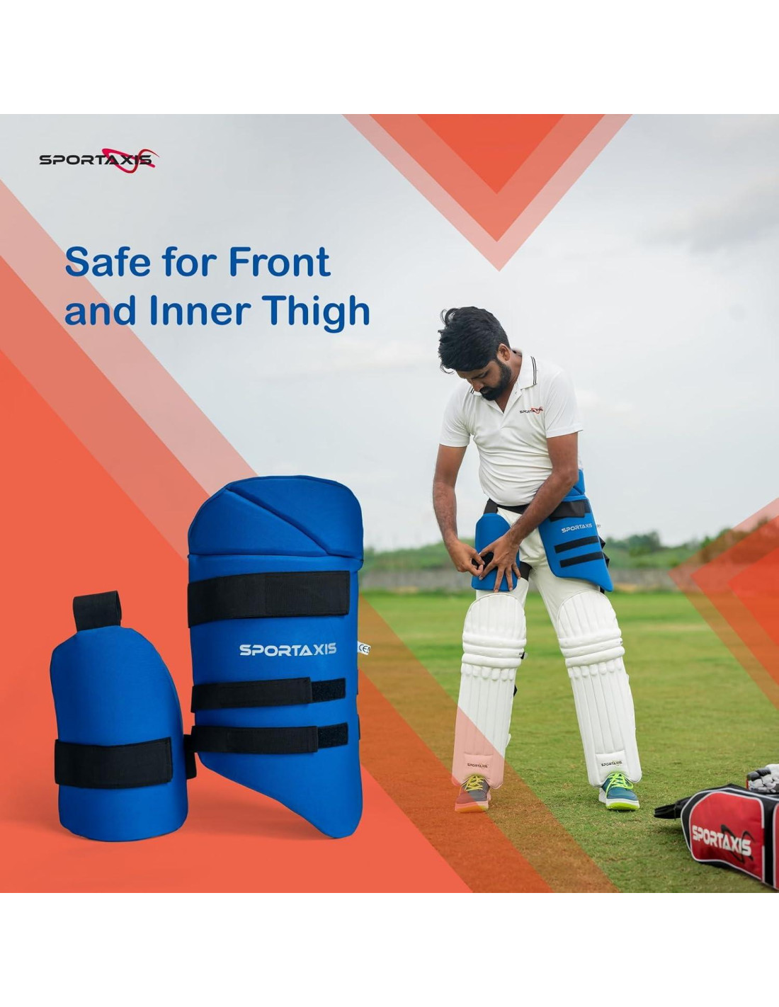 Los protectores de muslo de cricket Sportaxis están diseñados ergonómicamente para proporcionar comodidad, flexibilidad en el movimiento y protección para el bateador con espuma de ultra alta densidad para proteger las piernas de lesiones mientras se realizan golpes. Creado con fácil uso y construcción robusta, el tejido utilizado en la superficie interior de estos protectores de muslo es suave y amigable con la piel, sus propiedades absorbentes ayudan a mejorar el rendimiento. Está diseñado para proporcionar protección combinada en 2 lados para brindar soporte completo tanto a las regiones internas como externas del muslo.