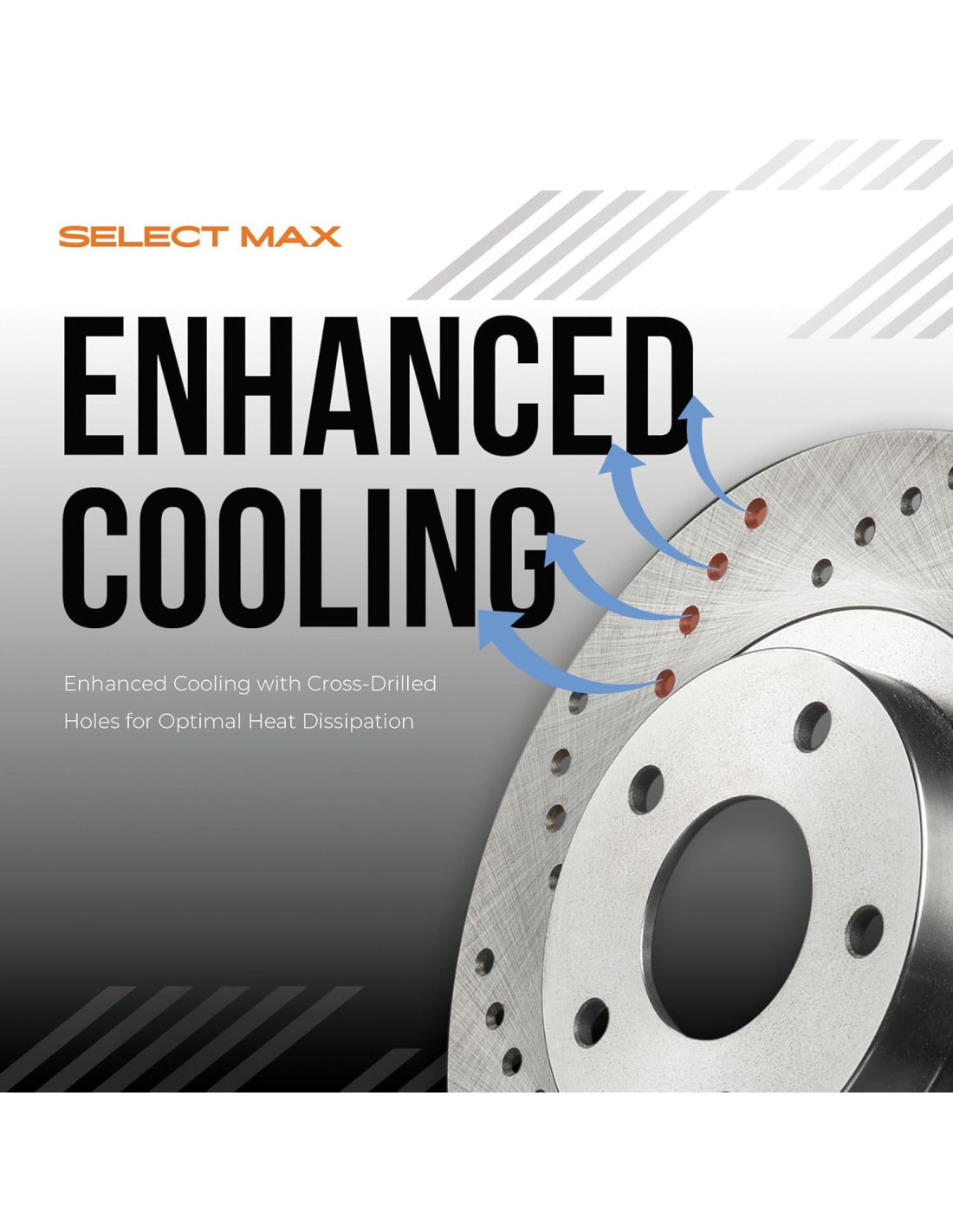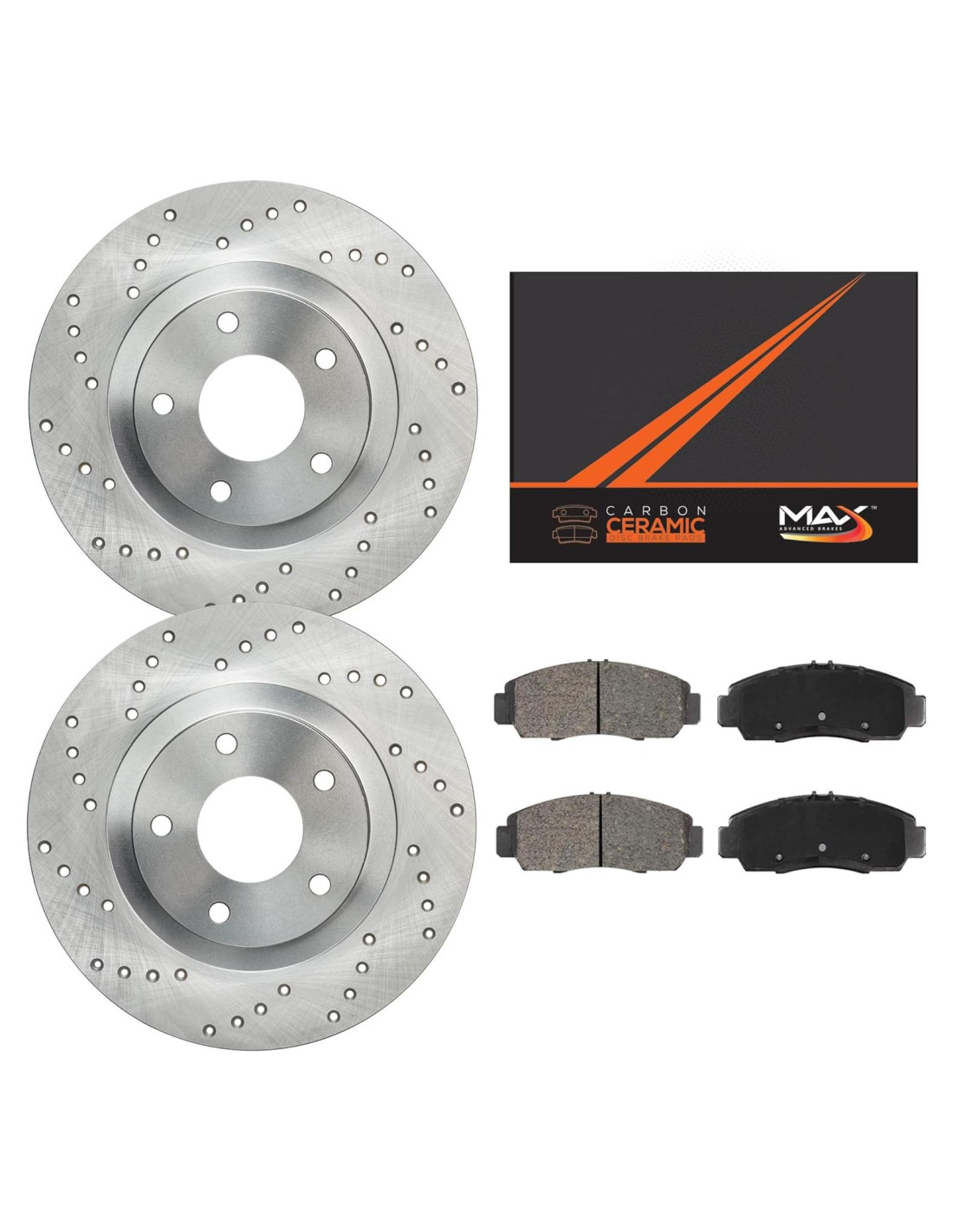 - Kit de Freno de Reemplazo Completo: Incluye 2 rotores de freno perforados delanteros y 4 pastillas de freno cerámicas de bajo polvo. Ajuste directo, sin modificaciones.