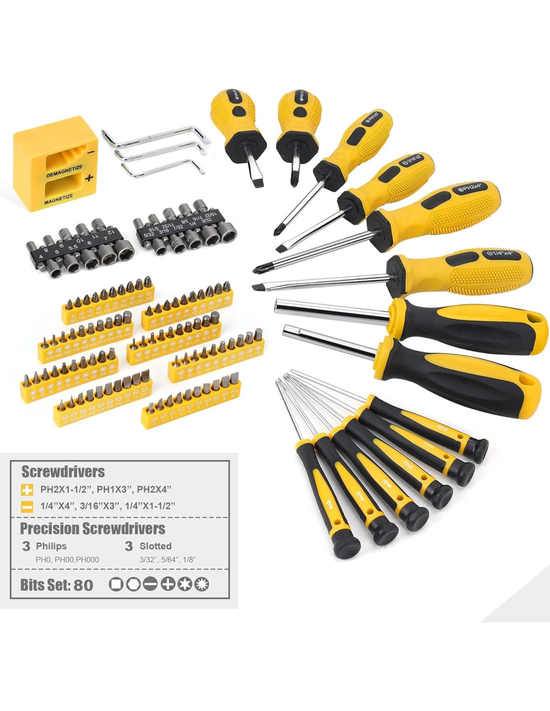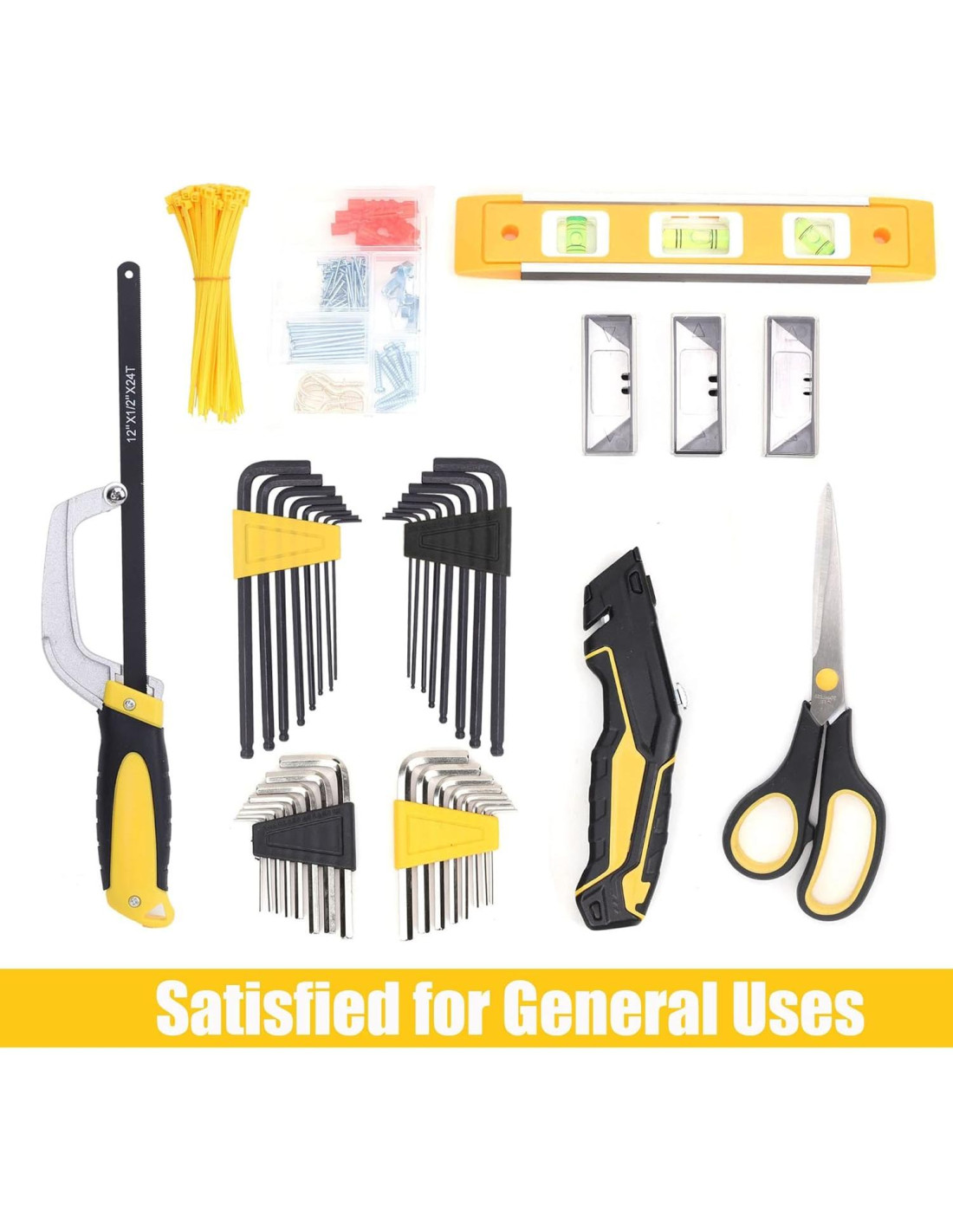 - Este juego de herramientas de 467 piezas es un asistente muy práctico para el uso doméstico. No solo contiene herramientas manuales para el mantenimiento diario del hogar, sino que también está equipado con herramientas mecánicas para satisfacer una variedad de necesidades de mantenimiento. Los kits de herramientas manuales para el hogar contienen un juego básico de destornilladores, destornilladores magnéticos con un juego de 80 piezas, un juego de alicates, una cinta métrica de 16 pies (4,88 m), un martillo de 16 oz (0,45 kg) con un juego de 100 piezas de hardware, entre otros.