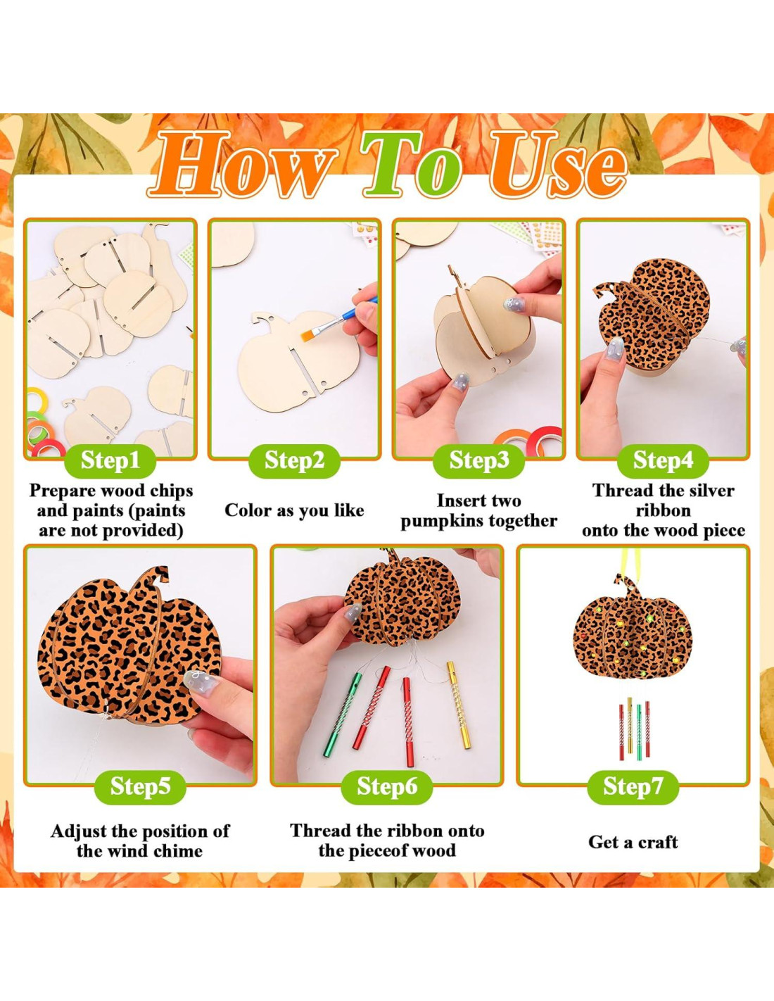 - [Materiales de Calidad] Nuestro kit de campanas de viento de calabaza DIY de Acción de Gracias está hecho principalmente de material de madera con una superficie suave, cortes ordenados y naturaleza ligera, lo que es seguro para las personas ya que posee bordes suaves. Pinta, colorea o decora cada rodaja de calabaza 3D como desees utilizando tus propias pinturas acrílicas, marcadores o crayones (no incluidos). Agrega detalles personalizados con el lápiz de pintura incluido y las pegatinas brillantes. Cuatro rodajas se ensamblan ingeniosamente en un encantador adorno de calabaza 3D listo para colgar.
