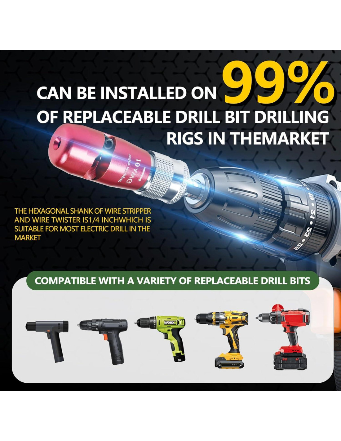 - [Alta Compatibilidad] Los destripadores de cables y el torcedor tienen un vástago hexagonal de 1/4 de pulgada, que es adecuado para la mayoría de los taladros eléctricos en el mercado, por lo que no tiene que preocuparse por no poder usarlos después de la compra.