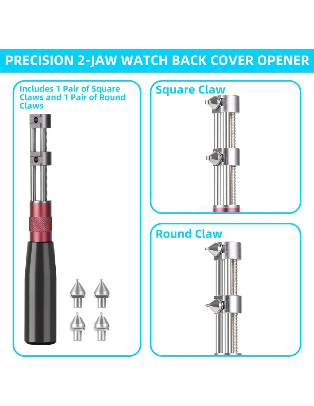 - [GARANTÍA DEL 100%] : El kit de herramienta de remoción de fondo de reloj de 2 mandíbulas de alta calidad y precisión es la mejor opción para herramientas de reparación de relojes, si tienes alguna pregunta, no dudes en contactarnos.