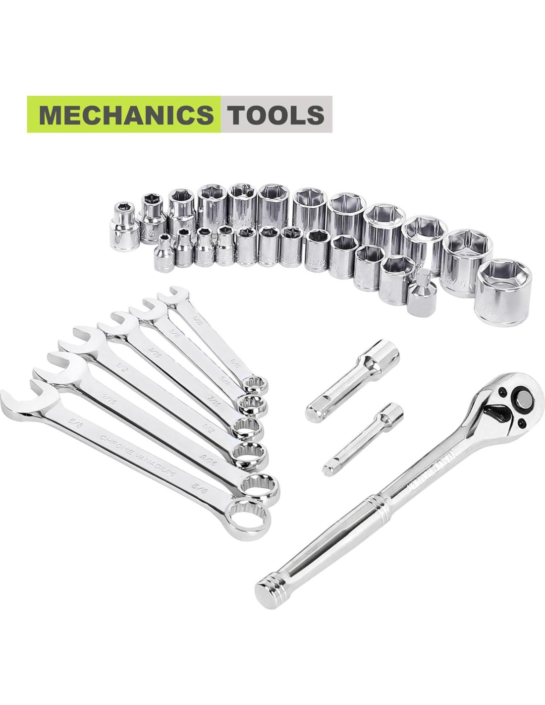 - Las llaves de vaso y las llaves combinadas están hechas con tratamiento térmico, cromadas y pulidas para mayor durabilidad. Incluye los tamaños más útiles para satisfacer su trabajo de reparaciones automotrices generales.