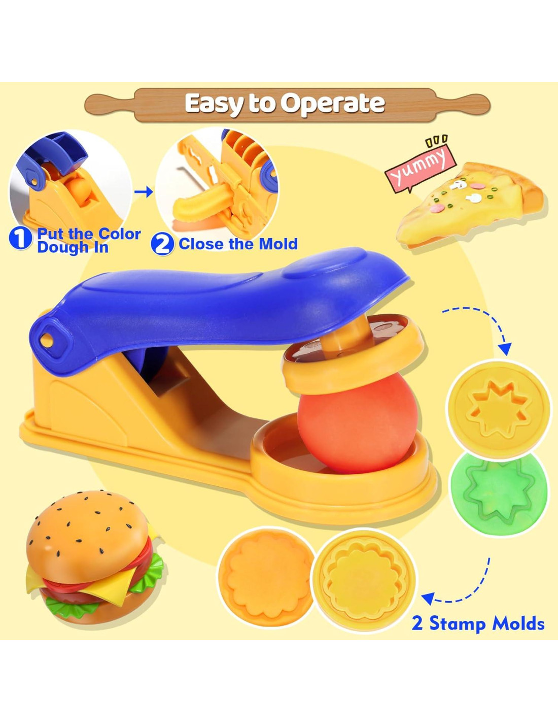 - [Aprender Jugando] Este set de plastilina mejora la imaginación, creatividad y habilidades prácticas de los niños mientras se divierten. Los diferentes colores de plastilina también ayudan a mejorar sus habilidades de reconocimiento de colores. Pueden jugar a la cocina, creando varias frutas, pan, fideos, helados y hamburguesas, añadiendo más alegría a su tiempo de juego.