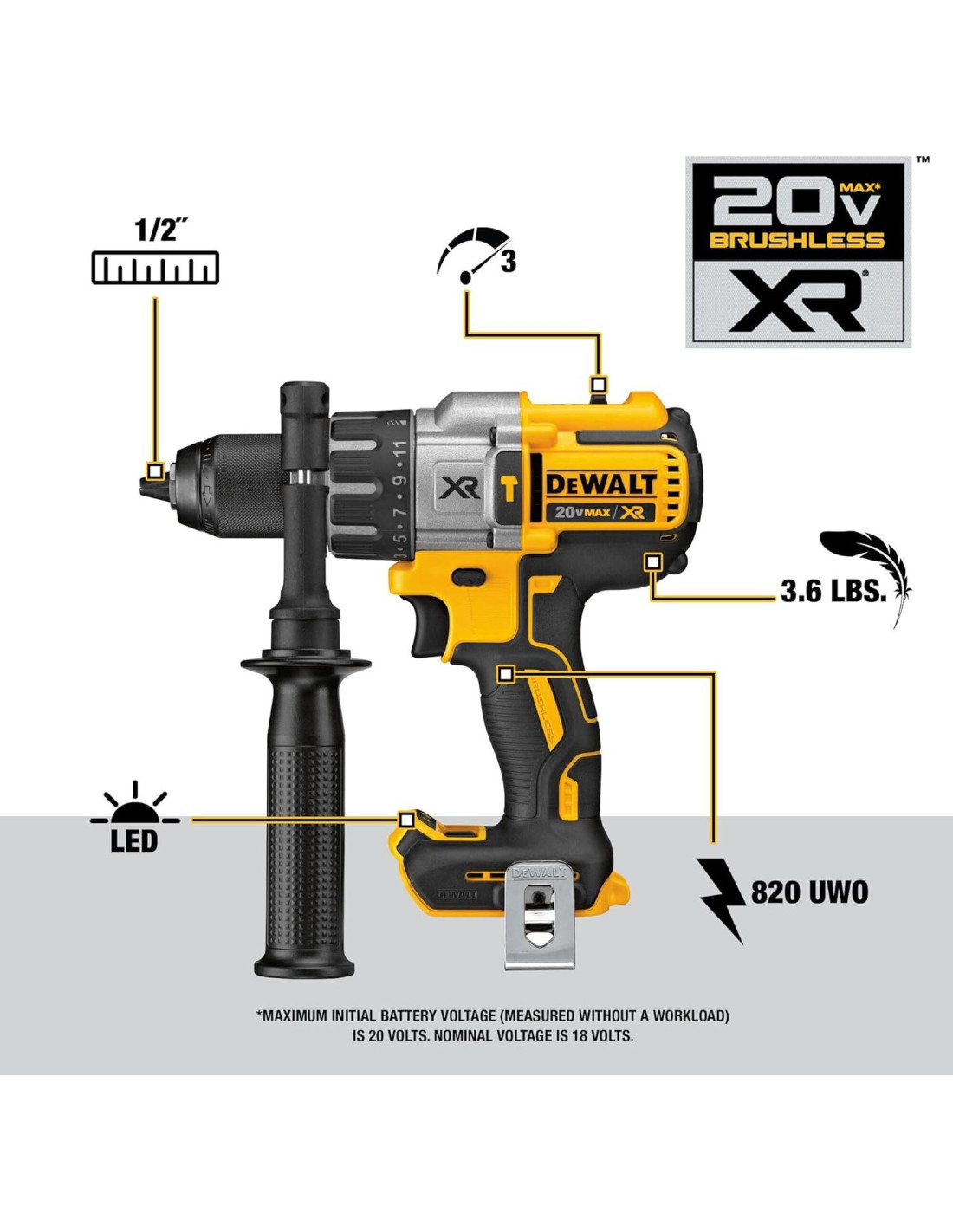 - DCD996 20V MAX* taladro de percusión de 1/2 pulgadas (1,27 cm) 3 velocidades, alto rendimiento (0-2,000 rpm), transmisión completamente metálica optimiza la herramienta para tareas para velocidades de aplicación rápidas y mejora el tiempo de funcionamiento del kit de taladro inalámbrico