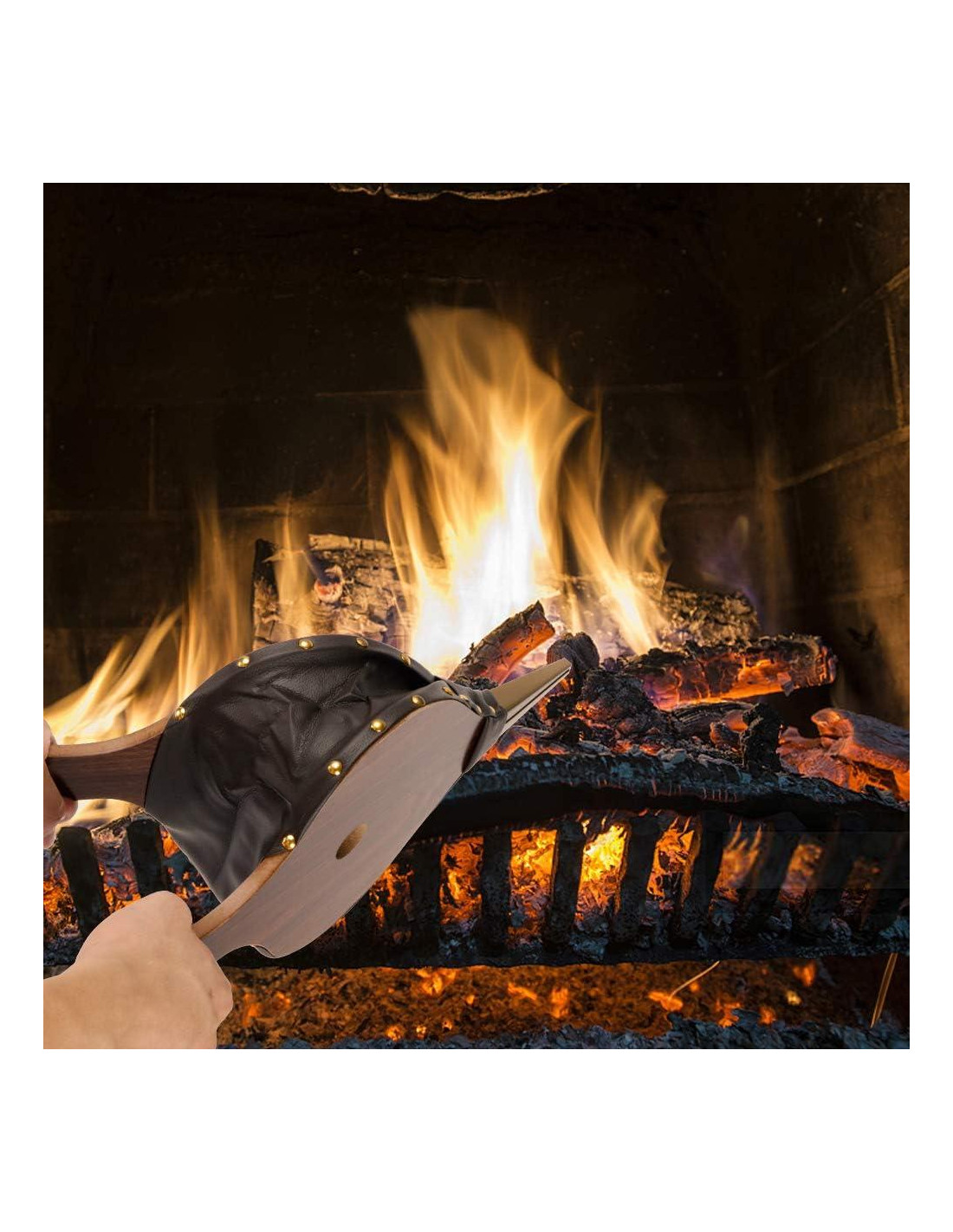 - [MATERIAL PREMIUM] Nuestro soplador de chimenea de madera está hecho de material de madera maciza real, acabado duradero con recubrimiento en polvo, apariencia elegante. La alta calidad del remache asegura que se clava firmemente en el soplador y no se caiga. Hecho de cuero resistente al calor y materiales de madera que no queman tus manos.