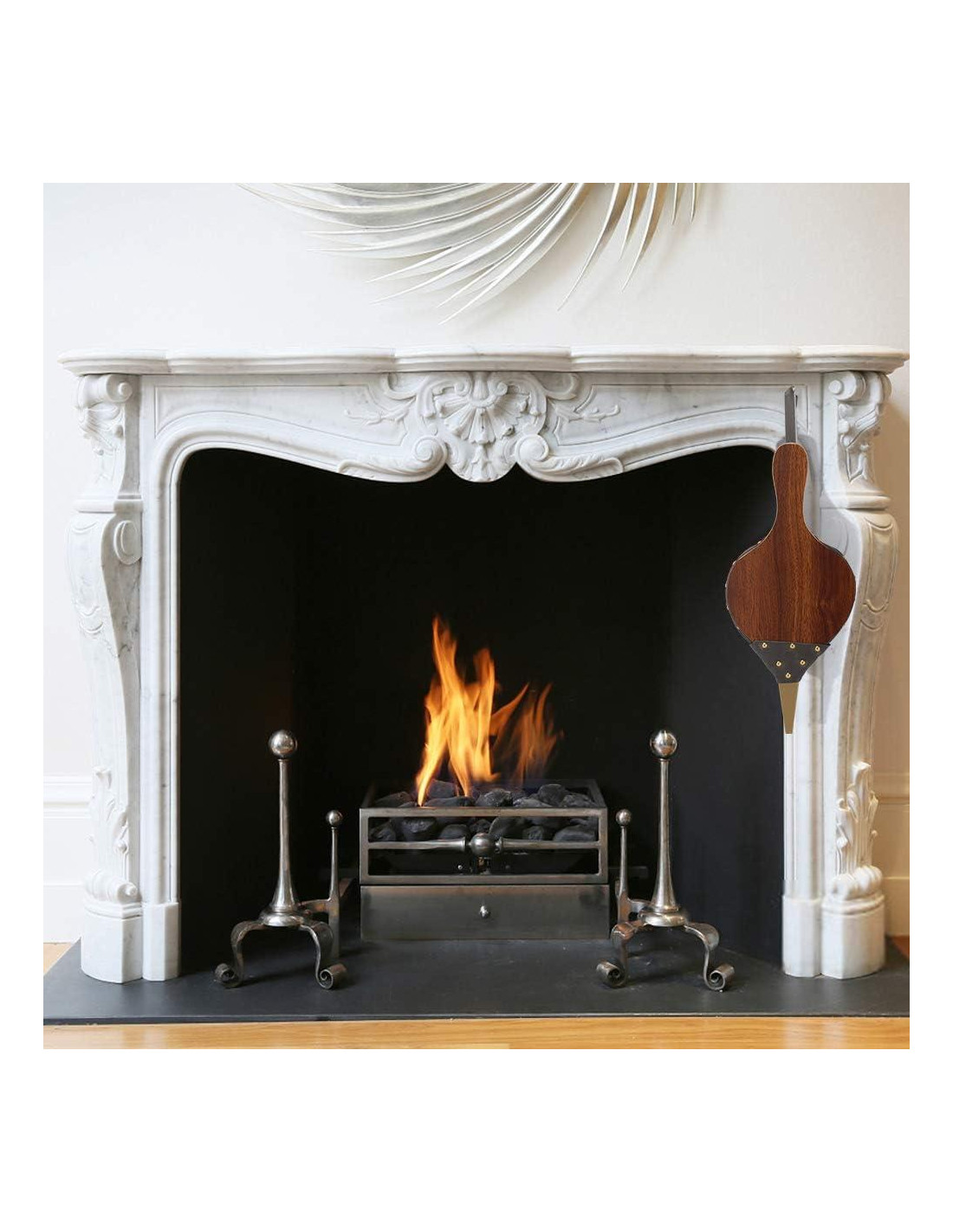 - [FÁCIL DE USAR Y DECORATIVO] Los sopladores absorben aire a través de un agujero en la parte inferior y lo expulsan a través de una boquilla. Esto elimina la necesidad de soplar directamente en un fuego, reduciendo así el riesgo de quemaduras. Su diseño tradicional se ha convertido en una pieza de arte. Nuestro soplador de chimenea puede agregar un toque decorativo a cualquier chimenea de leña y crear un ambiente más rústico, además de ser una bonita decoración para el hogar en la pared. Nuestro soplador de chimenea también podría ser un regalo ideal para una casa con chimenea.