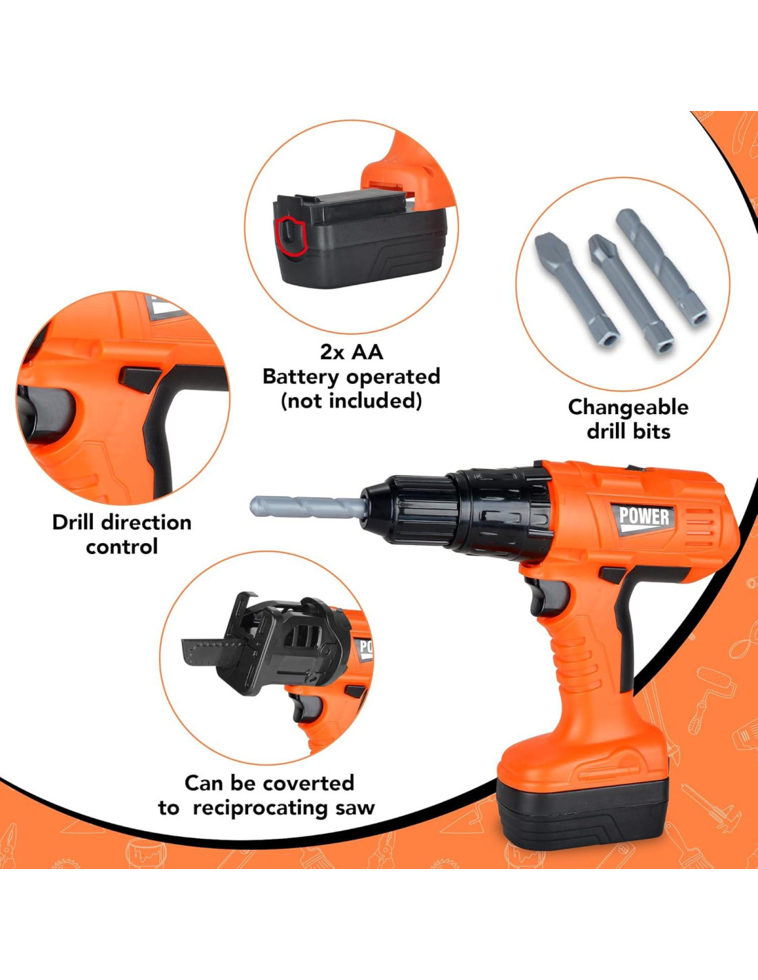 - CONSTRUYE SU IMAGINACIÓN: ¡El juego de herramientas de los sueños de tu pequeño! Con un taladro de juguete 2 en 1 y una amplia variedad de herramientas, este juego de herramientas para niños proporciona horas de diversión constructiva. Gracias a la bolsa estilo mensajero, almacenar todos los accesorios será muy fácil.