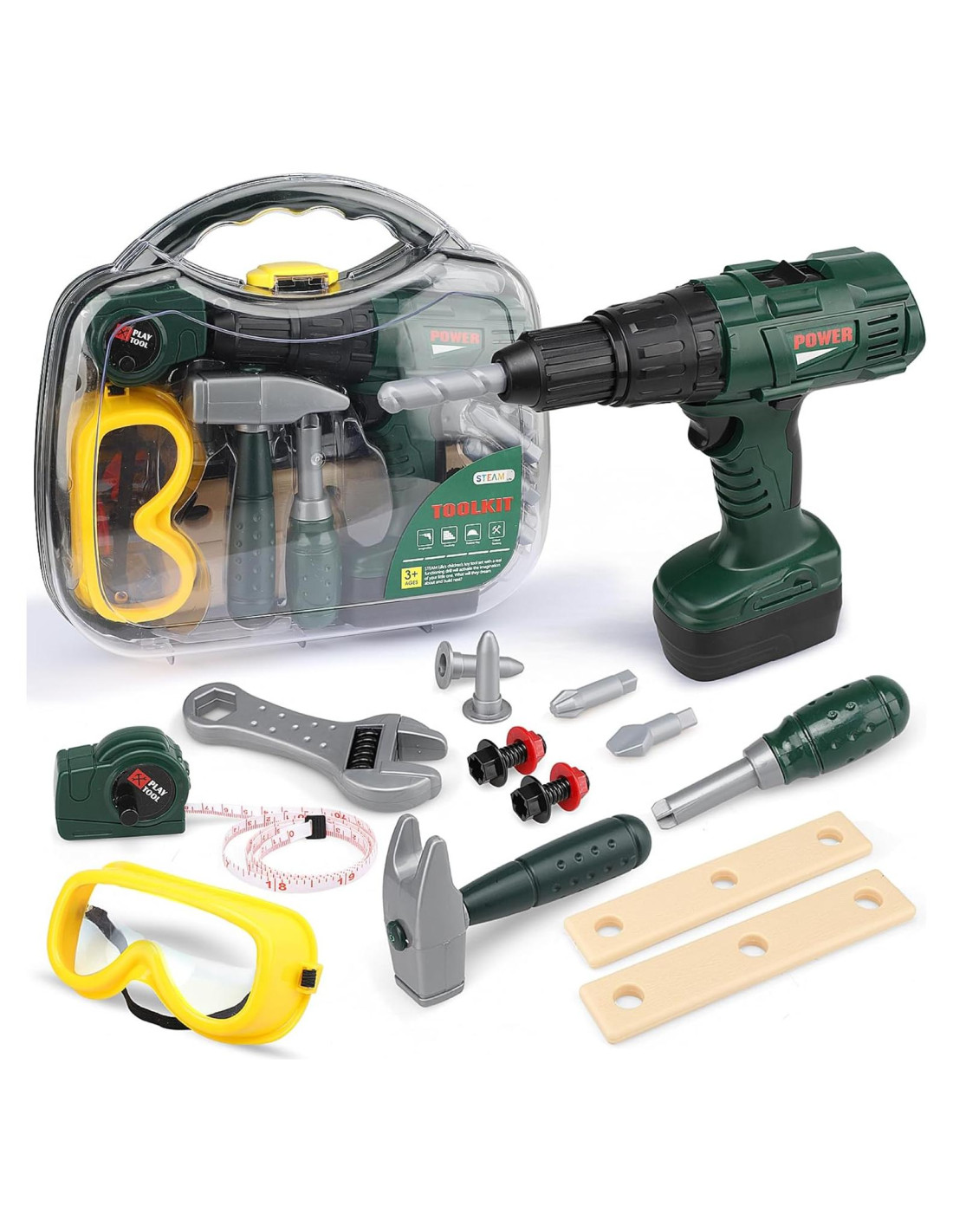 - JUEGO DE TALADRO ELÉCTRICO REALISTA DE MATERIAL PREMIUM - El Taladro de Juguete STEAM Life funciona con pilas y actúa como un taladro real. Las herramientas de juego de juguete vienen en un tamaño perfecto para que las manos pequeñas disfruten del juego imaginativo con herramientas de juguete que funcionan de verdad. Es una gran herramienta de aprendizaje y ayuda a fortalecer las habilidades sensoriales y prácticas de tu hijo.