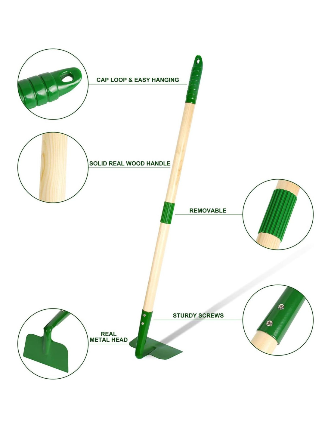 - MATERIAL DE CALIDAD Y SEGURO: Nuestros mangos están hechos de madera de pino importada, la cabeza de las herramientas de jardín está soportada por piezas de hierro sólido y rociada con protección ambiental. Estas herramientas son lo suficientemente resistentes para excavar realmente, y los niños pueden jugar al aire libre bien, como en jardines, granjas, patios, nieve, playa, etc.