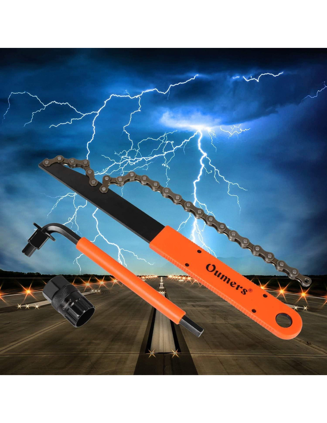 - Este kit combina una cadena de tracción, una llave de extracción de rueda libre/anillo de bloqueo mejorada y una llave auxiliar. Todos son de alta calidad, tratados térmicamente para evitar doblarse y flexionarse