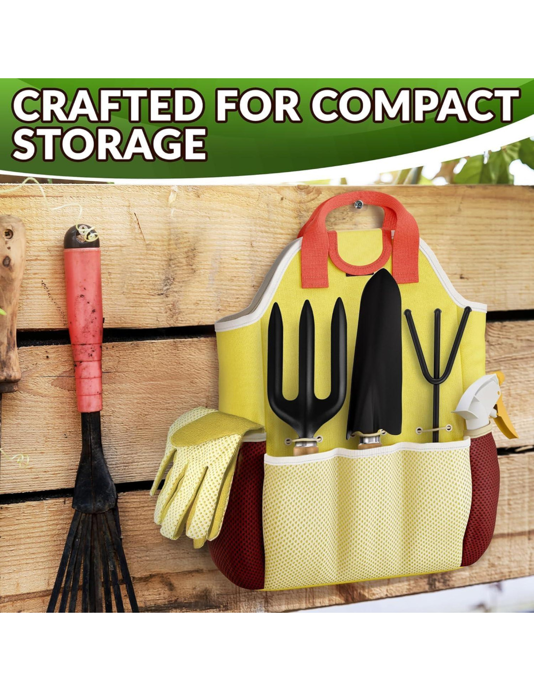 - Bolsa de Almacenamiento Portátil: Estos suministros de jardín cuentan con una bolsa de almacenamiento duradera y ligera con correas elásticas y múltiples compartimentos, facilitando el transporte y manteniendo tus herramientas seguras