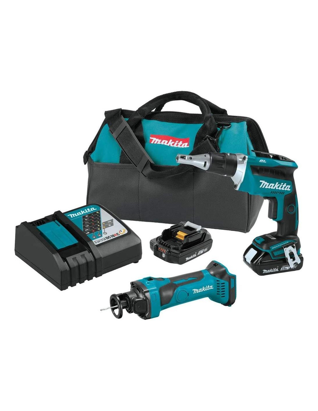 - Componentes incluidos: 2) Batería Compacta de Litio-Ion 18V LXT de 2.0Ah (BL1820B), Bolsa de Herramientas para Contratista de 14", Destornillador de Paneles de Yeso Sin Escobillas 18V LXT (XSF03Z), Herramienta de Corte 18V LXT (XOC01Z), Cargador Rápido Óptimo de Litio-Ion 18V LXT (DC18RC)
