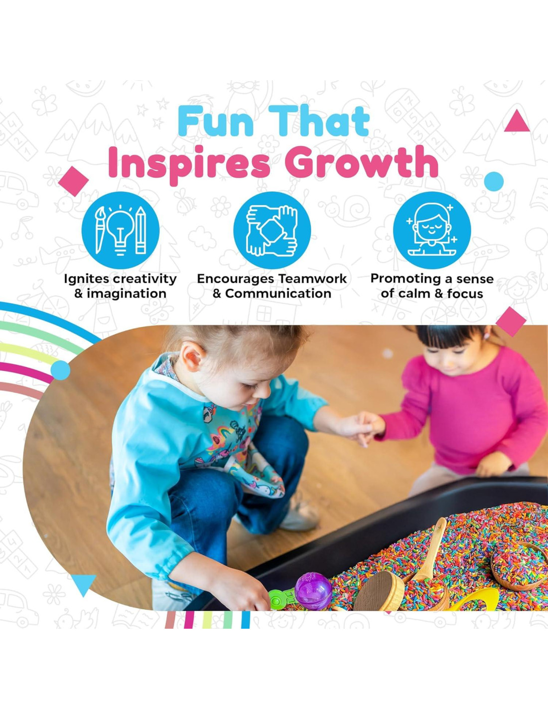 - Posibilidades Infinitas: Disponible en opciones de 10 piezas y 30 piezas, este juego de caja sensorial para niños pequeños proporciona una variedad de herramientas como un cucharón de miel, cucharas y tazones. Nuestros juguetes de mesa sensorial son adecuados para explorar rellenos sensoriales como arroz, frijoles y avena.