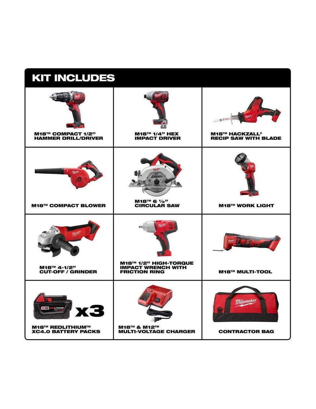 - Componentes incluidos: 9) herramientas, (3) 4.0 Ah baterías, cargador y bolsa de herramientas
