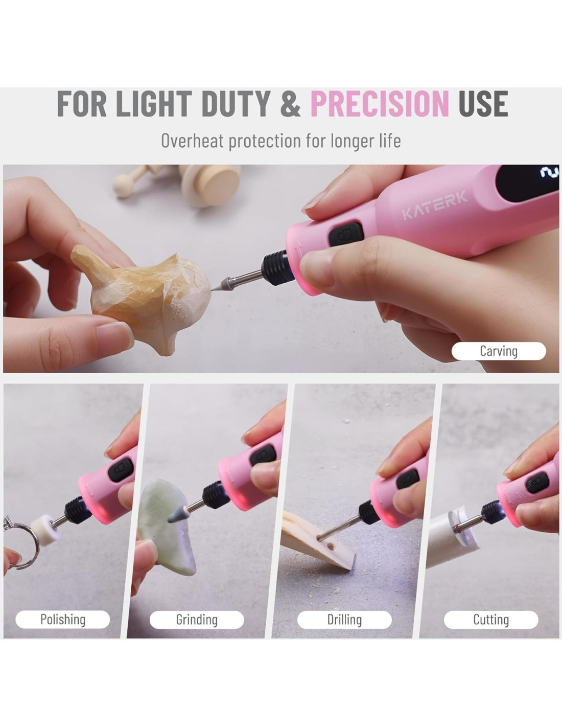 - Control de 5 Velocidades y Función de Memoria: La herramienta rotativa inalámbrica de Katerk cuenta con velocidades variables de 5,000 a 20,000 RPM para tareas de precisión. La memoria inteligente preserva tu configuración cuando se reinicia dentro de los 5 minutos, luego se restablece automáticamente a Velocidad 3 para el próximo uso, sin necesidad de ajustes repetitivos. ¡Trabaja de manera más inteligente con control sin esfuerzo!