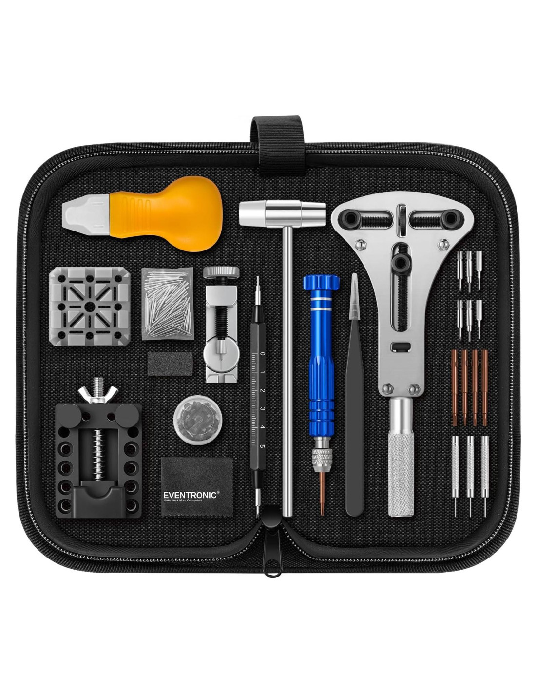 - [Aplicación Amplia] - El kit de reparación de relojes Eventronic es completo y fácil de usar, puede satisfacer las necesidades de ajustar la longitud de la correa, reemplazar la correa, abrir la tapa, reemplazar la batería del reloj, juntas, desde el desensamble hasta el ensamblaje, brindándote la diversión del mantenimiento y ahorrando tu dinero.