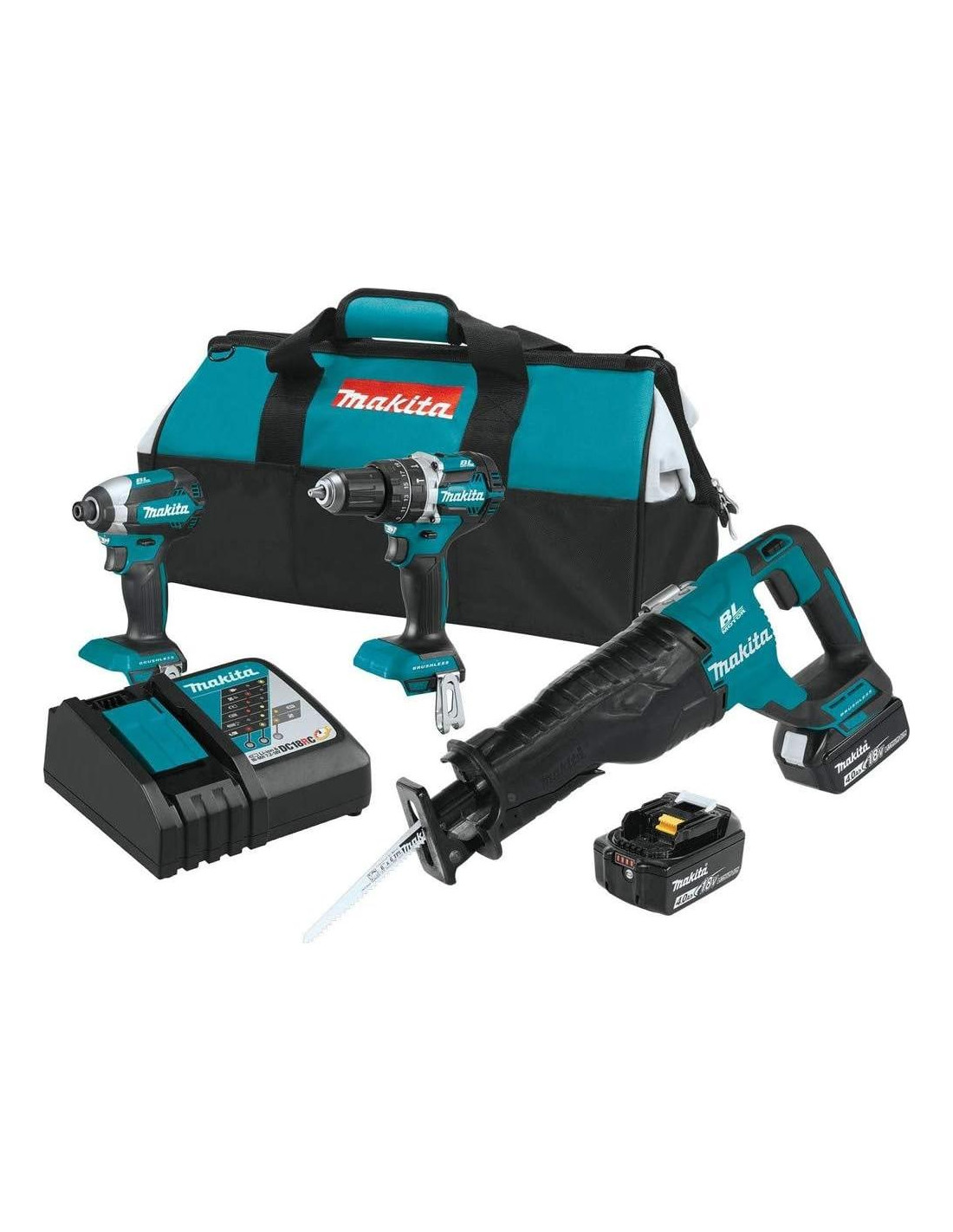 - Componentes incluidos: 2) Batería de Ion de Litio 18V LXT 4.0Ah (BL1840B), Taladro Percutor Sin Escobillas 18V LXT (XPH12Z), Destornillador de Impacto Sin Escobillas 18V LXT (XDT13Z), Sierra Recíproca Sin Escobillas 18V LXT (XRJ05Z), Cargador Óptimo Rápido de Ion de Litio 18V (DC18RC), Bolsa de Herramientas