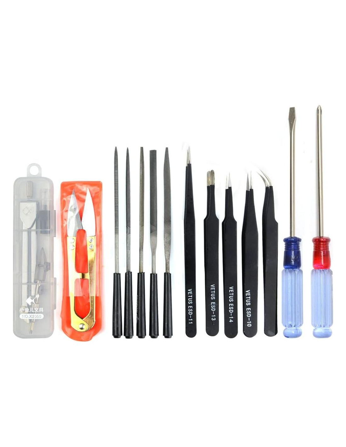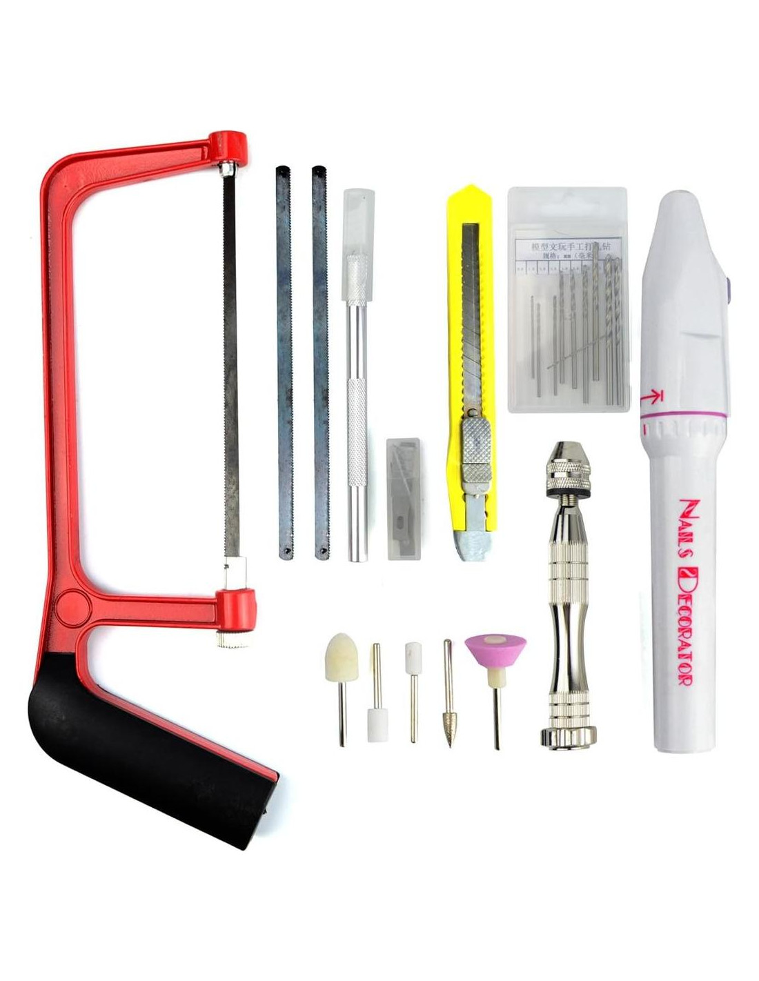 - RANGO COMPLETO Y COSTO EFICAZ---El paquete incluye: 4 X Papel de lija; 1 X Almohadilla de corte; 1 X Sierra y 2 hojas de sierra; 1 X Cuchillo de precisión y 1 X hoja; 1 X Máquina de pulido eléctrica y 5 cabezales de pulido; 1 X Separador; 1 X Alicates de corte; 1 X Alicates de corte diagonal; 1 X Regla de acero; 1 X Regla blanda; 10 X Clips de color (10 piezas de madera de pino y 5 clips rojos 5 clips negros); 1 X Cuchillo; 3 X Bloques de pulido; 4 X Piedras de cuchillo; 1 X Taladro manual; 1 X 10 piezas de brocas; 1 X Tijeras; 1 X Compás; 5 X Lima; 5 X Pinzas; 2 X Destornillador.