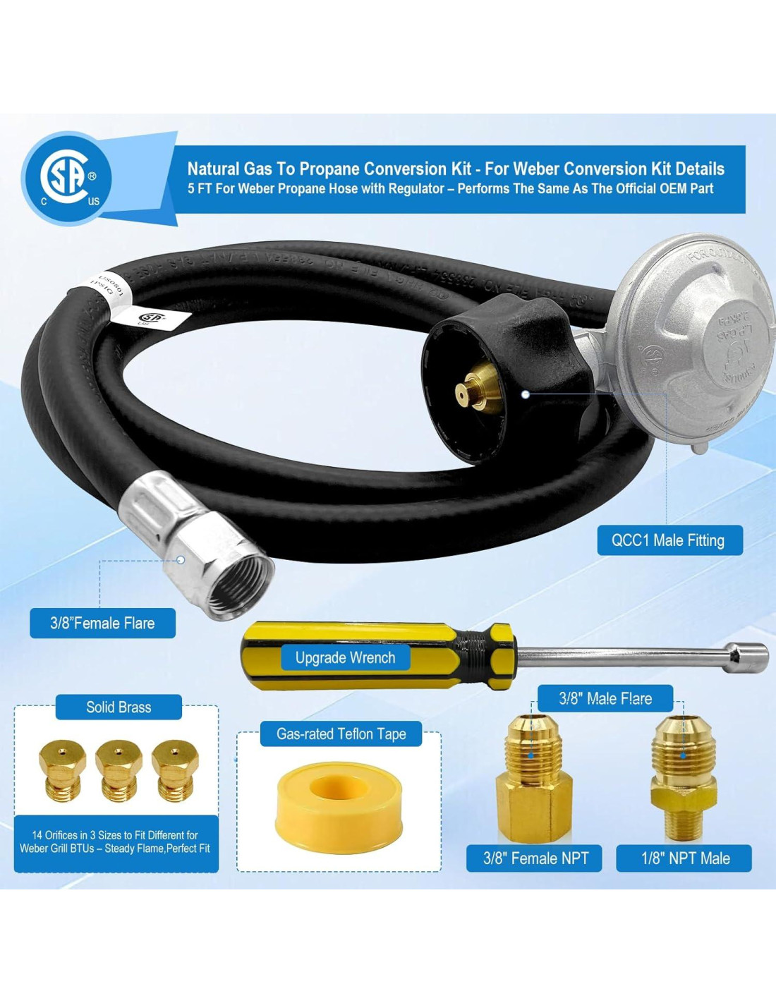 - Para el kit de conversión de gas natural para Weber, obtenga mejores resultados de parrilla con el kit de conversión adecuado para Weber: ¡convierta fácilmente su parrilla Weber Genesis, Genesis II, Spirit II 310/315/210 de gas natural a propano! El kit de conversión de gas natural a propano de Sekvira incluye una manguera de regulador de propano de 5 pies igual que OEM, 14 orificios de LP perforados a mano (3 tamaños), 2 tipos de accesorios de 3/8", llave, cinta de sellado. Elija el adecuado de NG a LP Gas Conversion Kit para un flujo de gas suave y un mejor rendimiento, ¡disfrute de la parrilla!