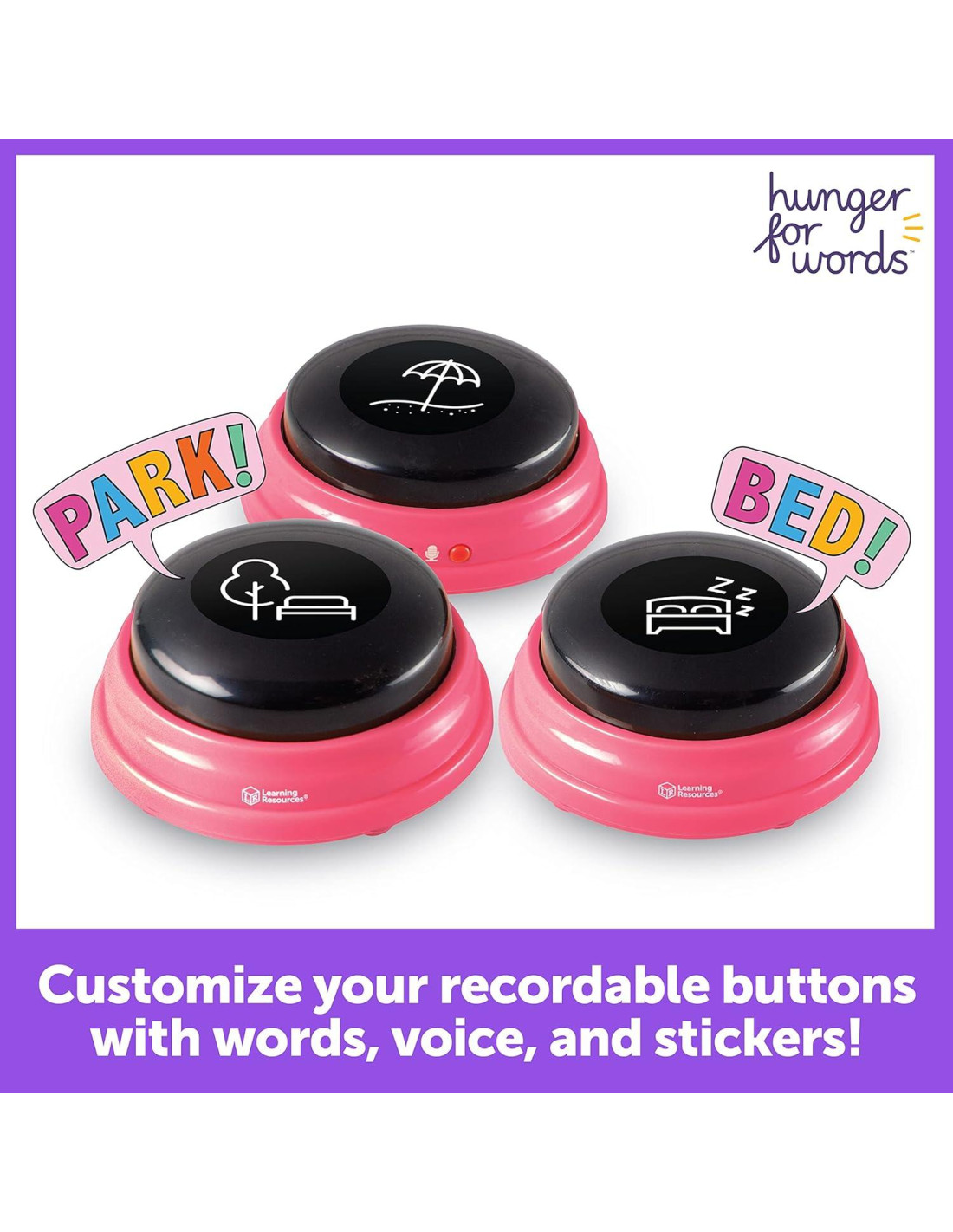 - ¡Botones de Habla Grabables!: Graba tus palabras de lugar en este set de 3 botones de habla para mascotas, ¡luego usa las pegatinas temáticas para ayudarte a mantenerlos en orden!